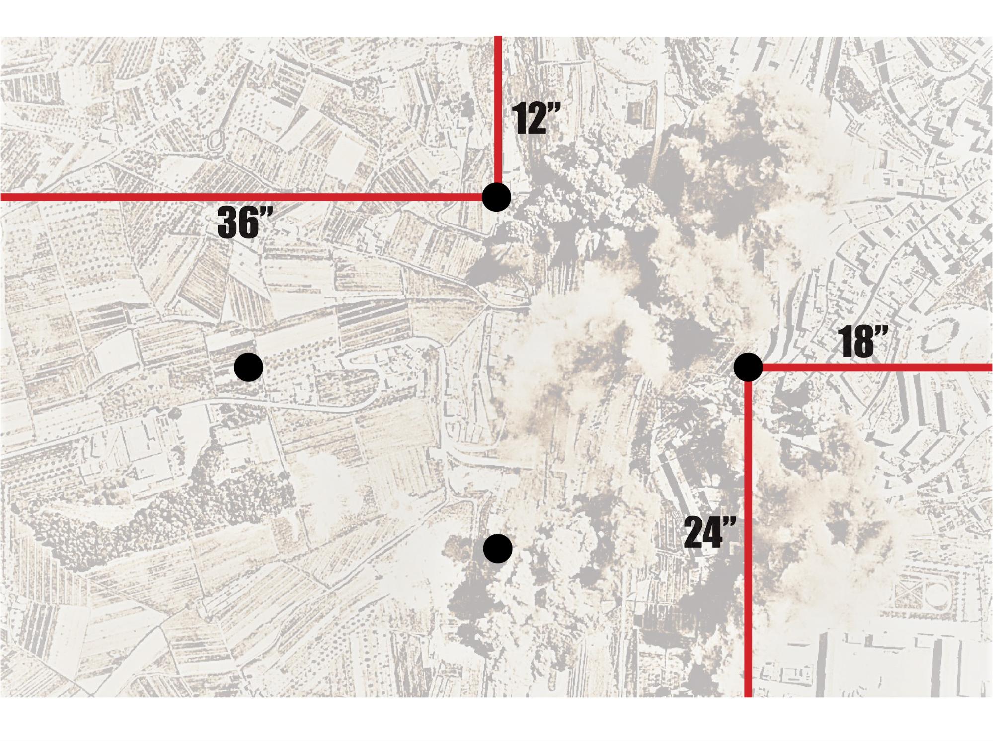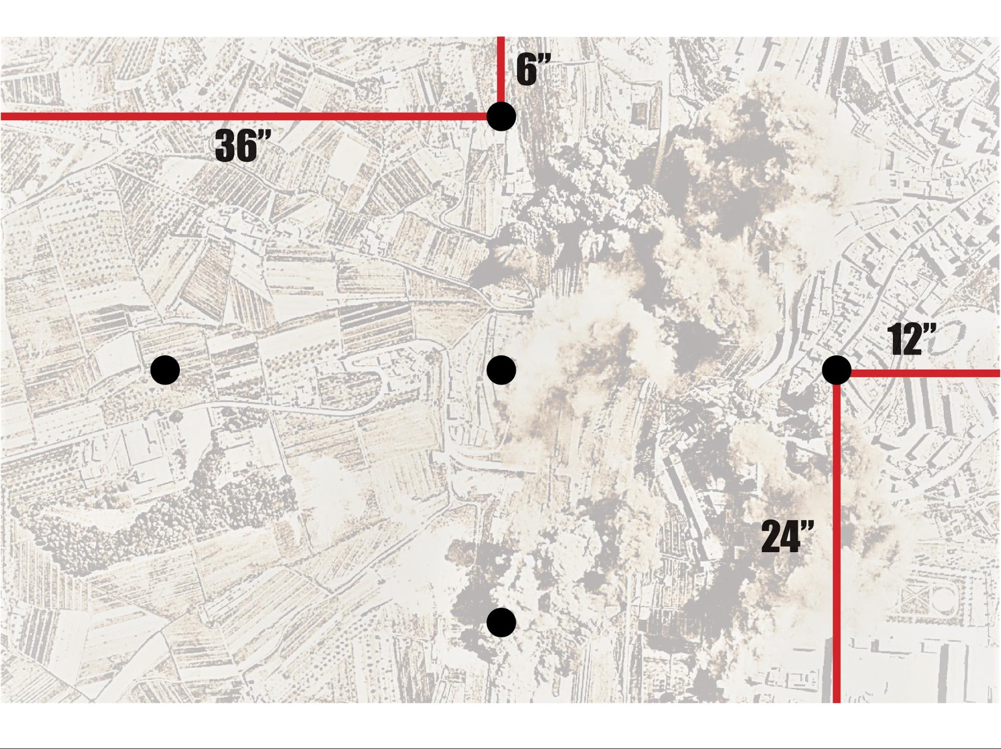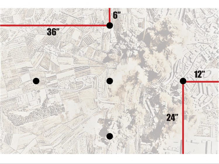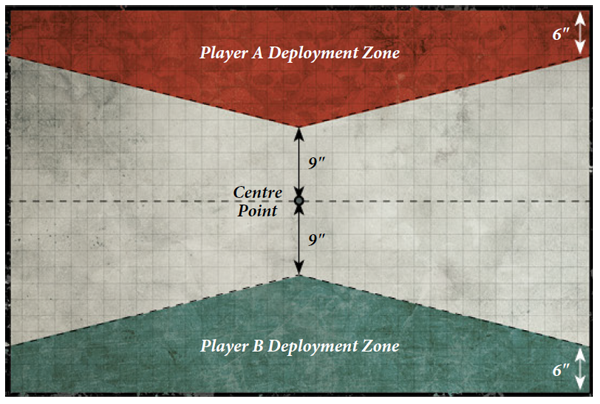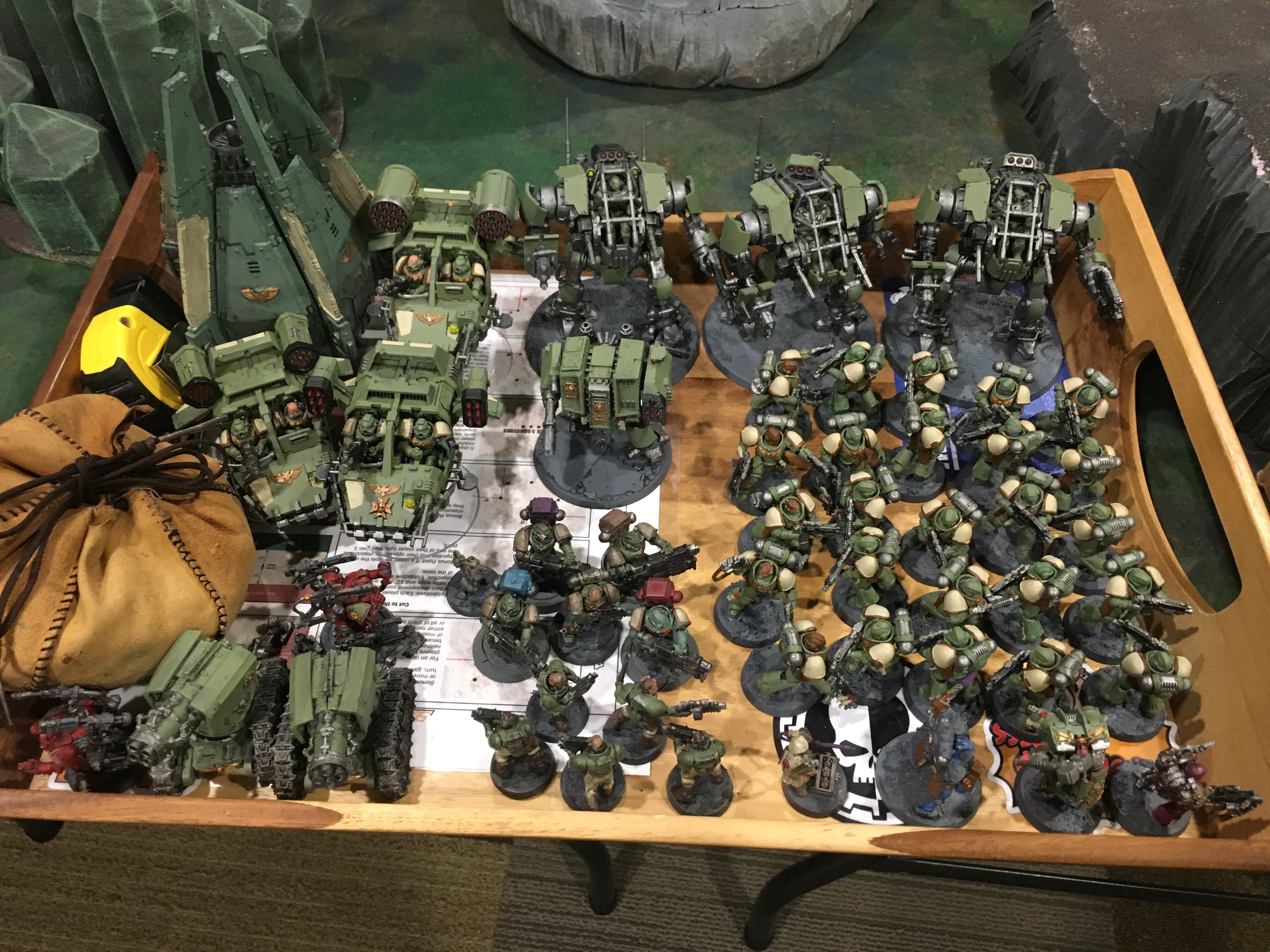 I won first drop and took the middle with my first Invictor. After that we did our alternating thing, him with on Invictor on my right, and the rest of the deathball on my left or behind the L blocker. My stuff was mainly in the bottom center, with the speeders to the right behind a huge square impassable building. I tried to seize since the Invictor trades would be important and failed.