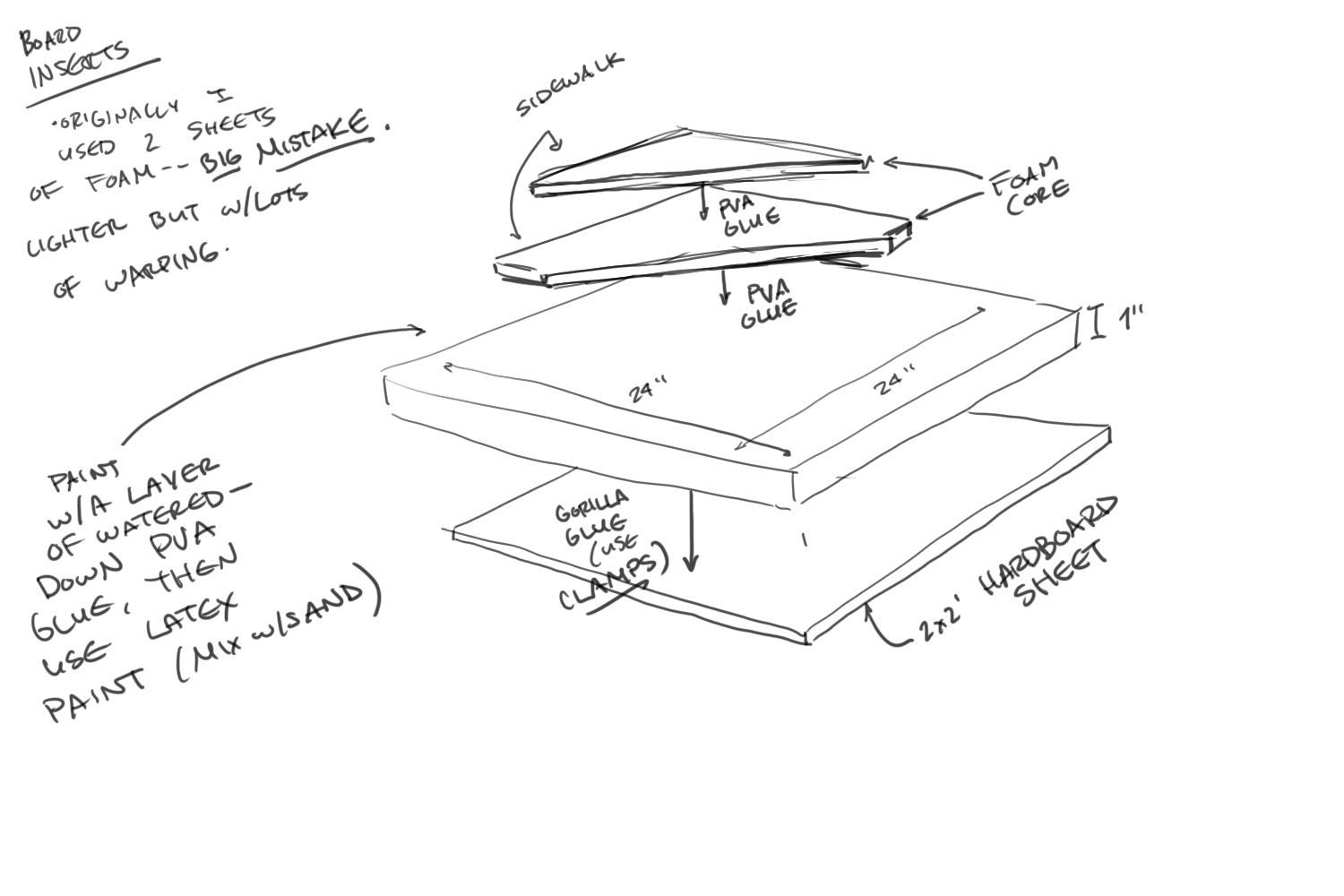 - There was no room for a 6x4' plank, and I wanted to make the table tiles modular anyways, so I'd need to make tiles - at least 6