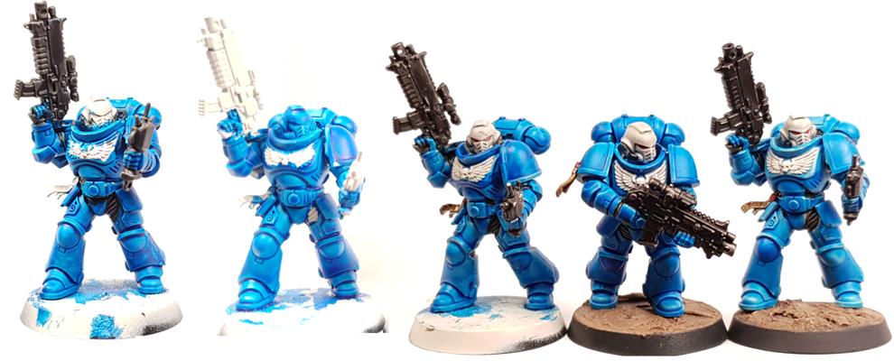Painted by Tyler "Coda" MooreCompare them with this squad. Look at the poses, the colour used on the key points and the armour.