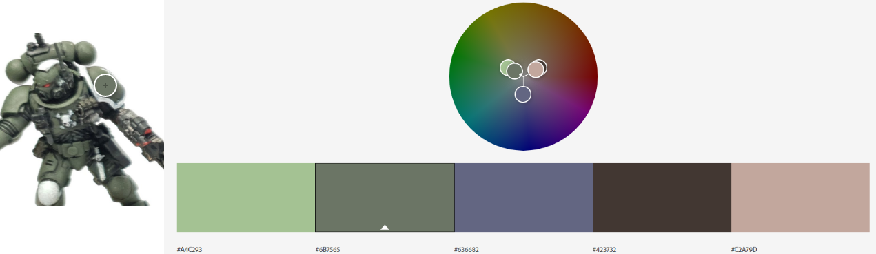 To make this work we need to upload a sample or at least find out it's hex code of a colour we like. Bolter and Chainsword have some excellent resources, here, for example this thread of citadel hex codes will let you punch them into the Adobe Colour Wheel site. Seriously google "XYZ brand paint hex codes" and you'll find them. Muck around with them until you settle on the colour your are going to paint the majority of your model with.