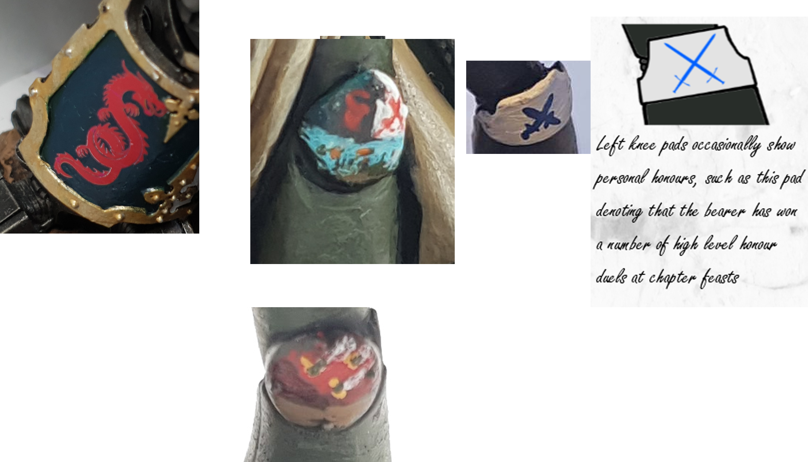I hinted about this a few times earlier when I talked about kneepads and shoulder trims. Key features like this are a great potential narrative canvas for you to tell your armies story on and will expand off the springboard of our basic scheme.