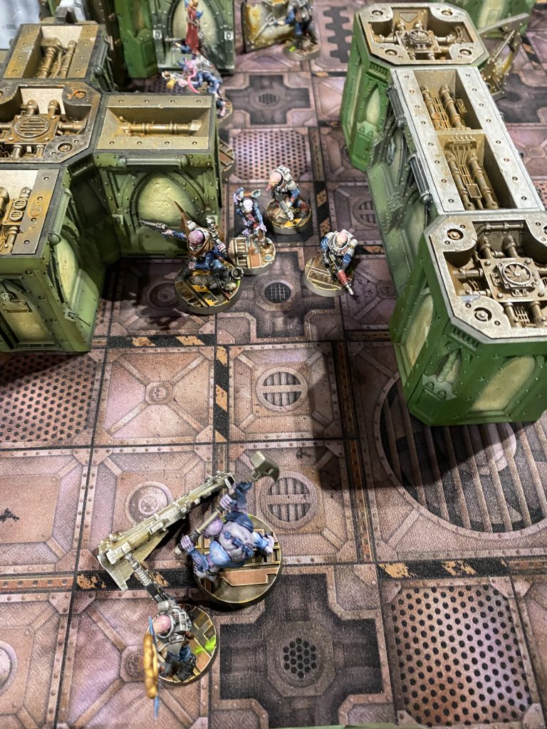 Leland was a chill guy, and we both seemed to have a very fun time, but he admitted he tunnel visioned on trying to kill my gang instead of focusing on the mission. For my part I stuck to the mission, but most of my choices in terms of skills and weapons didn't come into play during the mission. Leland being GSC had hazard suits, so he didn't care much about my hand flamers, and since Infiltrate had been nerfed by the mission my champions were unable to use either of their skills (the second being Overwatch) to much effect. My aberrants on paper seemed ideal for powering through Leland's low strength autoguns, but a hot 5! rapid fire shots from the heavy stubber dropped one outright, and the successful long charge from his own aberrant dropped both in the same round making Nerves of Steel pretty irrelevant as well.
