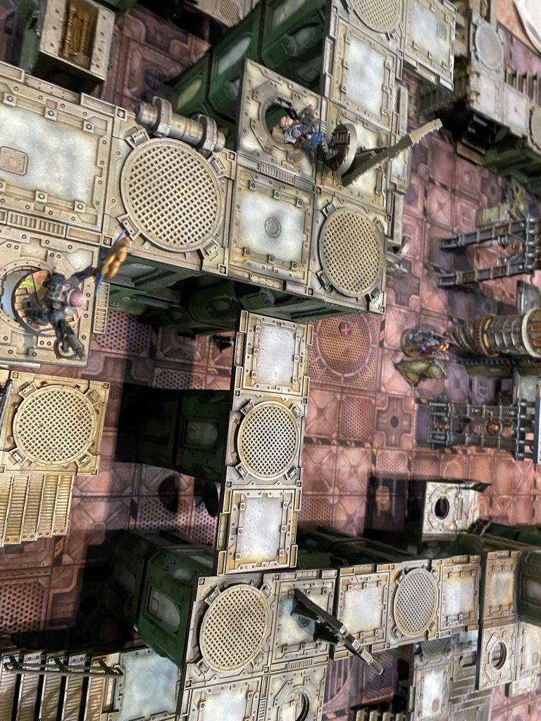 Meanwhile, on the ground Christian moved his meltagun champion out of cover, but only within range of my leader if I attempted a hip shooting action. This particular champion had -1 to dmg, so I decided to go big and risk taking him out early. He had mentioned the meltagun champion had been a bit of a terror in his previous games, so I made my move to take him out. My Alpha barreled around the corner, and I decided to HAM and overcharge all 3 plasma pistols. What proceeded was both his champion and my leader evaporating in a ball of blue flame as his guns exploded in his hands, but managing to land a hit on the champion in the process that took him OoA. I found this hilarious as I rarely overcharge plasma, and feel like it almost always goes poorly.