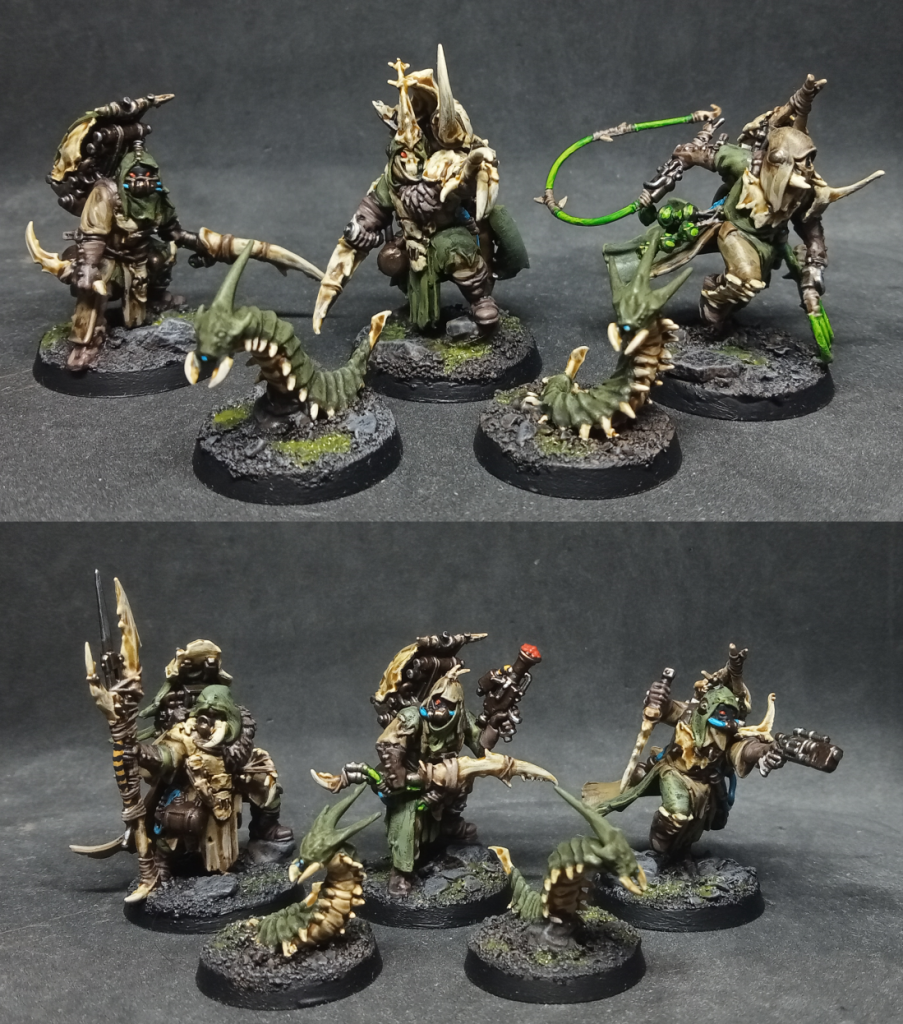 Venom Whip. The other Versatile option, though, is in our opinion the obvious pick for Hunters. This is a Toxin weapon, which as a rule of thumb is similar to Strength 4, and Damage equal to the target’s remaining Wounds. So it lacks Shock and -1AP compared to the Trident, but you are a much greater threat to models with multiple Wounds, which tend to be the most dangerous of all. Now that difference is situational, so we wouldn’t always take this over a Trident, maybe mix it up occasionally. We should also remember that Toxin is harmless to vehicles, and Hunters in Ash Wastes campaigns [with other weapons] are a decent threat to light buggies and similar targets. But it’s overall a good pick. Rating: B+