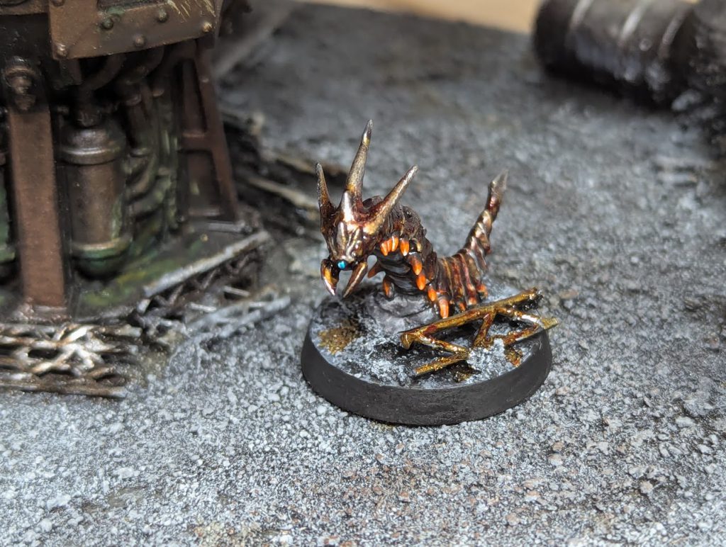 Arthromite Spirewyrm. Credit: Kevin GensonOne thing that did work out well was the Arthromite Spirewyrm, which painted up very quickly. I wanted to do something a bit different so I focused on the idea of a species of bug where the carapace was hardened steel that had rusted in the corrosive environment of the Ash Wastes. Because the Nomads are so heavily connected to the wildlife of Necromunda it seemed appropriate to paint a bug first to get a sense of how things would work out.