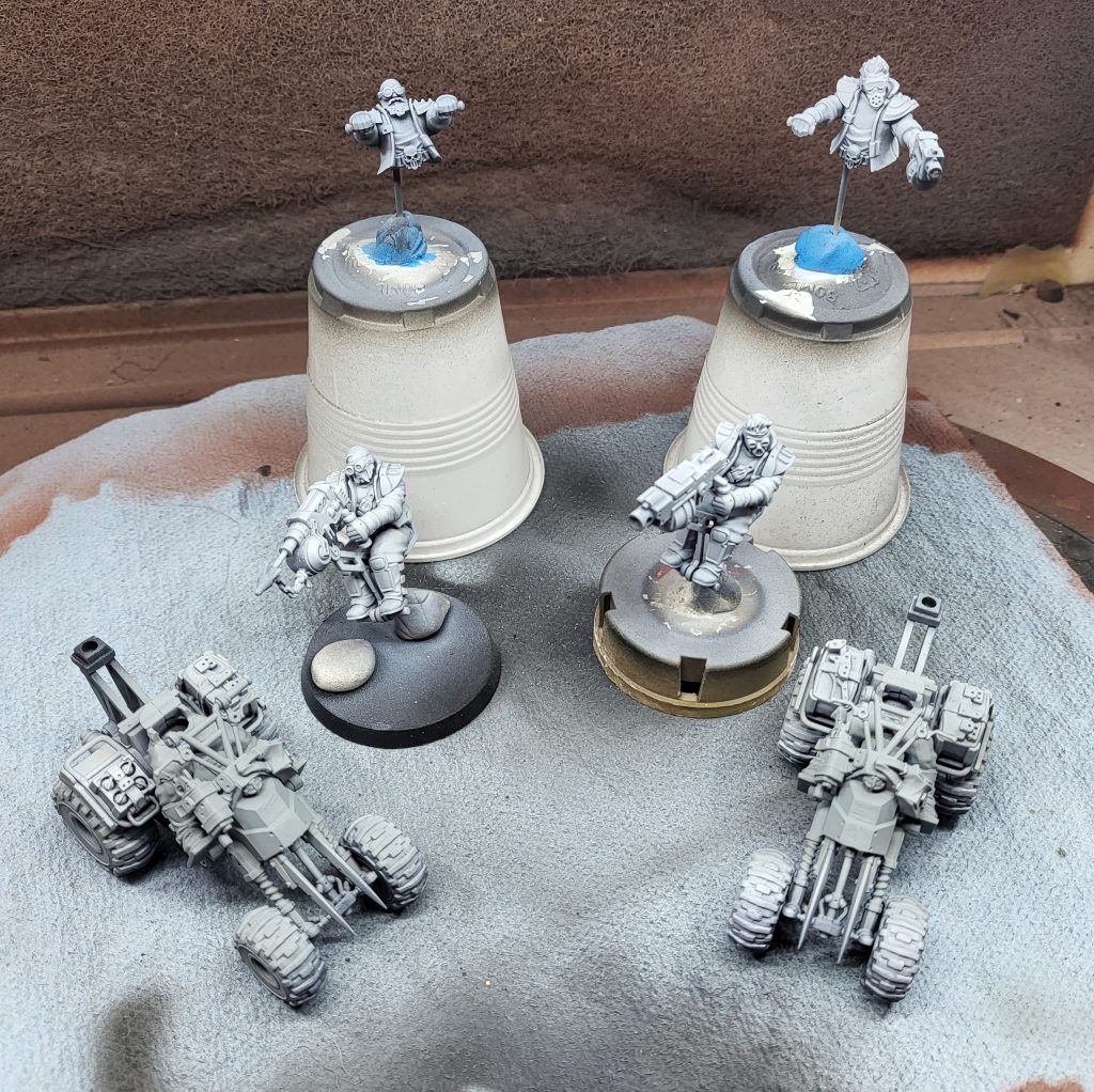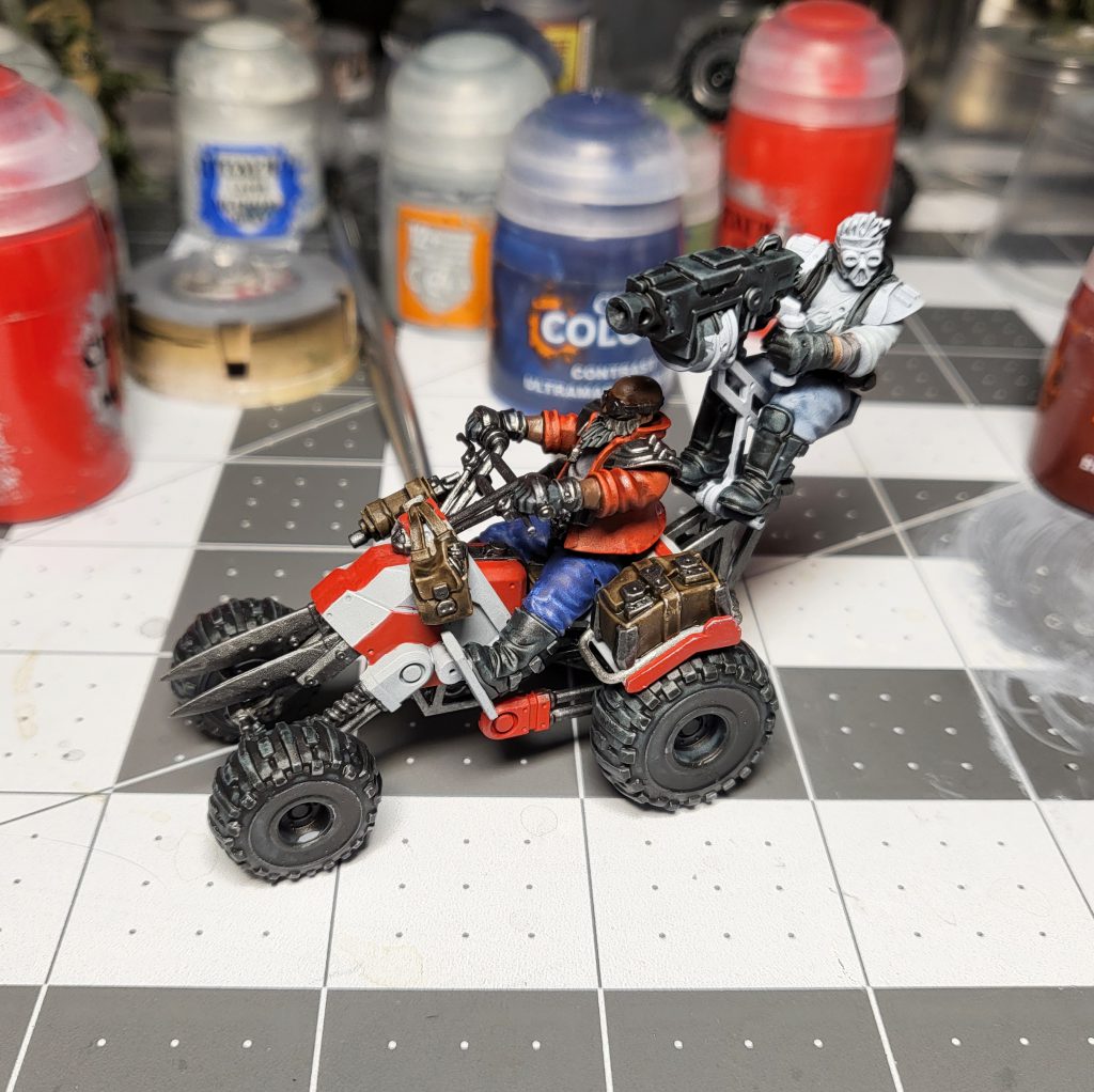 The Orlock main kit here is the same one you’ve known and loved for years - with the bonus that you will end up with at least one extra bolt pistol arm from Outrider leftovers (along with 4 heads, and heavy weapon mount heavy bolter & harpoon guns). Speaking of the Outriders - this kit was definitely a challenge to put together. For a Necromunda vehicle kit I was not expecting so many fiddly and fragile bits. At times it felt like building a dune buggy out of Nighthaunt swords! I highly recommend using sub-assemblies for painting, as there are some incredibly hard-to-reach places on the quads. GW’s -tV4Ow">quad painting video shows the optimal sub-assembly - quad, rider, and gunner separately. I’d go slightly beyond and suggest that you leave the tires off as well. The quads come with optional bases, which I don’t intend to use - but maybe that is your kind of thing!