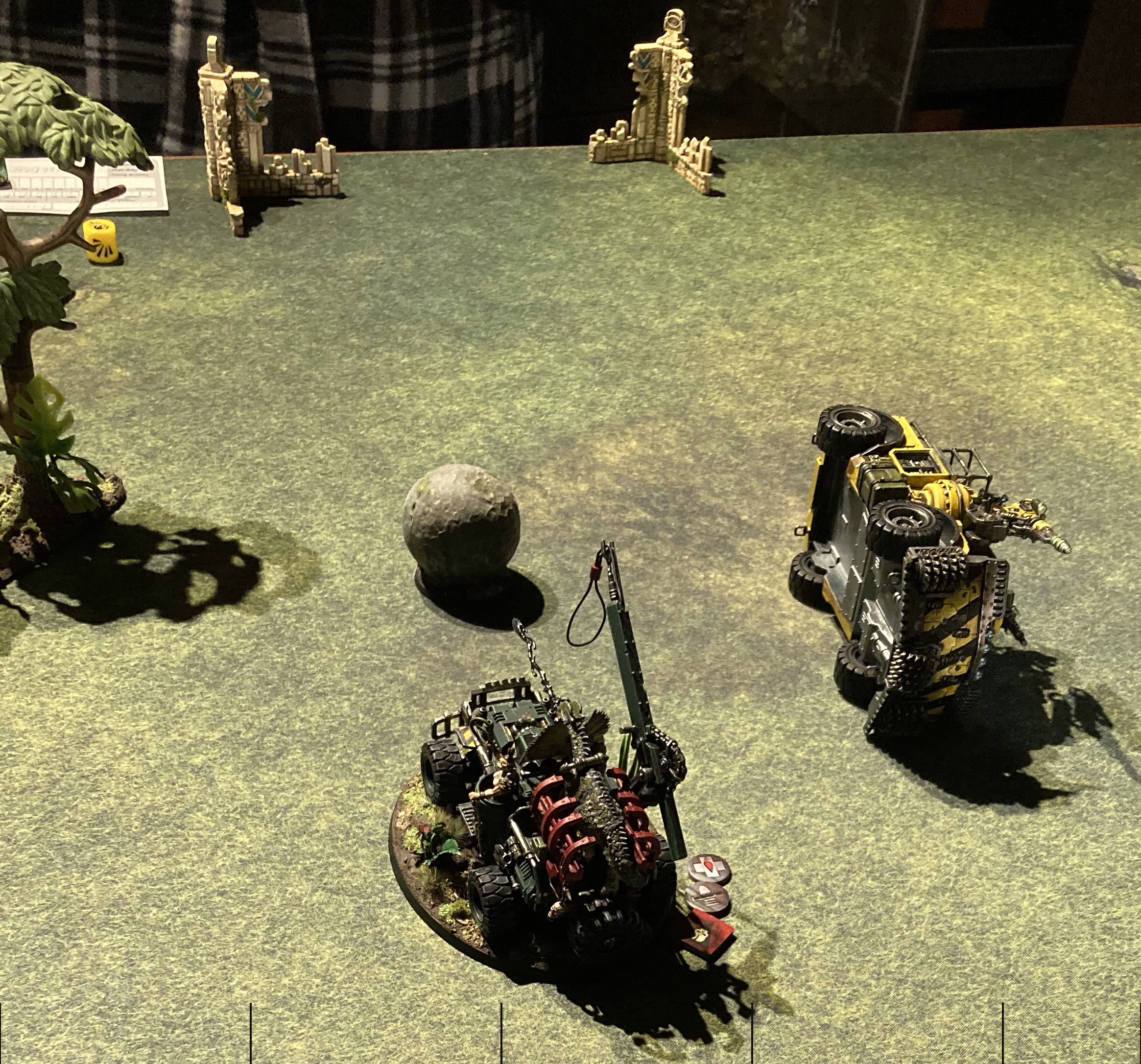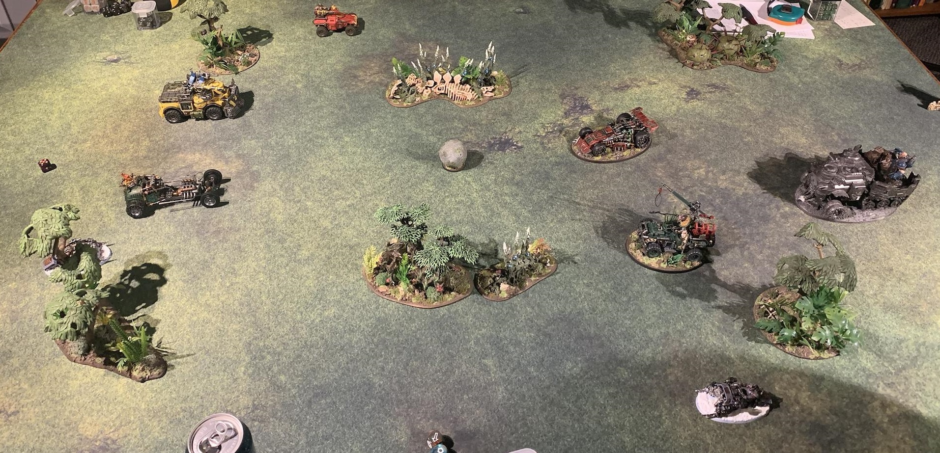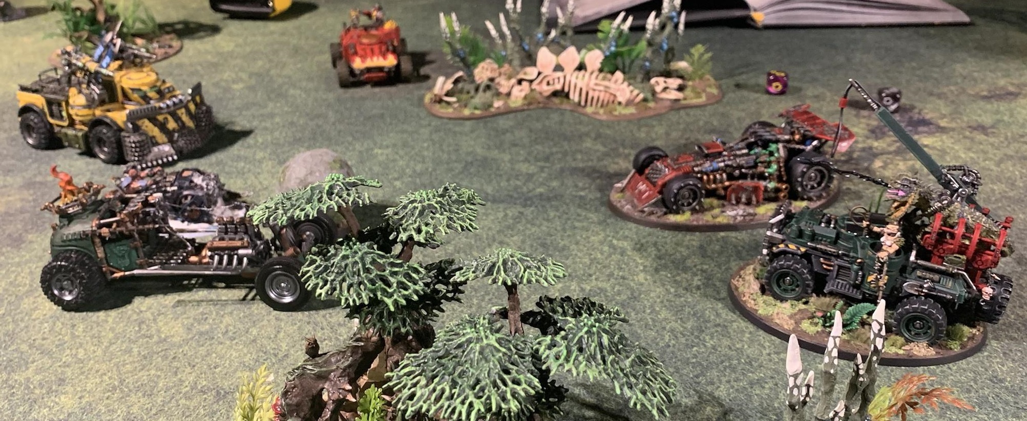 A couple of weeks ago, Merton and I attended a Necromunda weekend at our friend Peter’s house. We had a lot of fun playing games with gingerbread terrain and hunting down Santa on his sleigh, but what turned out to be the most fun game of the weekend was an impromptu all-vehicle rally to attempt to refresh everyone on the vehicle rules.