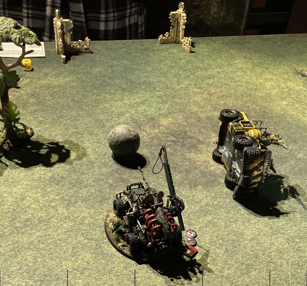 We called it Ash Wastes Rocket League, after the delightful videogame where rocket-powered cars attempt to knock a huge soccer ball into a goal. But unlike in Rocket League, cars on Necromunda generally all have guns and don’t simply bounce off one another when they collide!