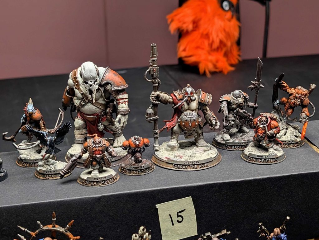 The event shifted to showcasing everyone’s gangs after this final round of gaming. Players arranged their models for display, and though there was a player vote for best painting and for best kitbashing, this was a celebration of effort, artistry, and community above anything else. It was amazing to see so many models and gangs I’d been admiring online in the leadup to the event all at once, and a treat seeing the fighters I squared off against under more ideal lighting. What stood out to me then and still resonates now is these were all gaming pieces that had seen action over the past day and a half, and not models assembled and painted exclusively for display. This gave it a special element compared to something like seeing the Golden Demon cases at Adepticon.