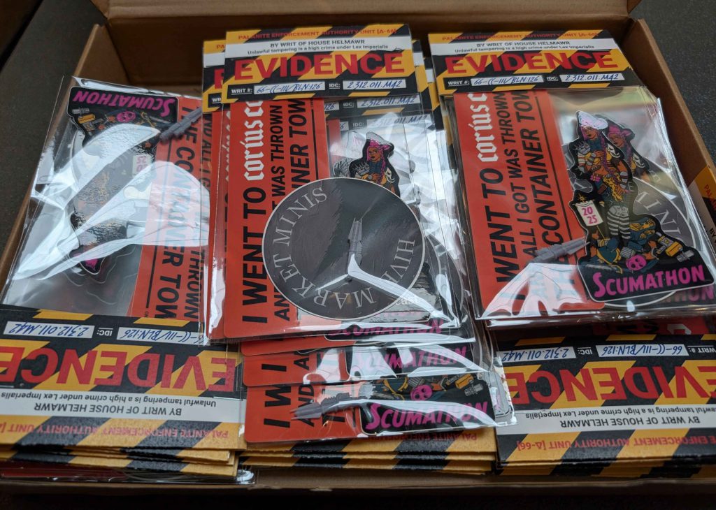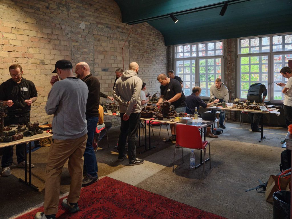 This author brought gifts! Credit: @hivemarketminisThe event formally kicked off on Saturday morning at Ruth’s Berlin, a perfectly-sized repurposed event space additionally serving coffee and drinks. Now-familiar faces gathered outside as preparations were finalized indoors. I fully acknowledge having some level of social anxiety, but what I am always happy to share is that it becomes much easier to work through it when standing in a small crowd already talking about their ideal terrain “made to order” rereleases and hopes for the next Necromunda box set drop.
