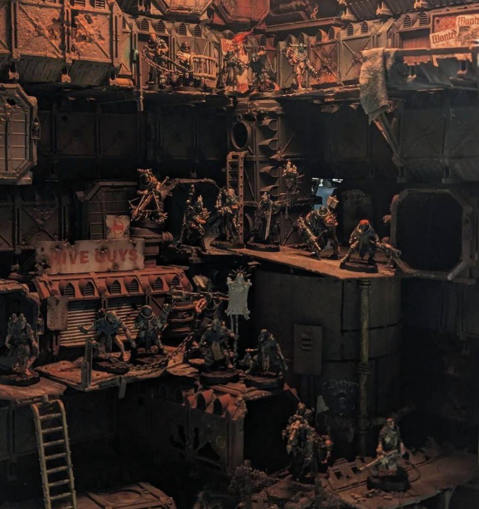 Cawdor gathering at the local Hive Guys. Credit: @sumpseafoundryMy luck withered up immediately when one of his bonepickers found a Yu’Vath Puzzle Box in a loot crate, but there’s no denying how fun it is seeing a rapid fire 3 scattershot weapon unload 10+ S2 hits on an unsuspecting ganger, even if it is your own. For my part, Klyx the Raven, an actual bird modeled as a proxy for a Venator Ratling, got to find and fire off a bolter repeatedly, passing multiple ammo checks and taking down a model or two before being unceremoniously pasted himself. That’s Necromunda, baby!