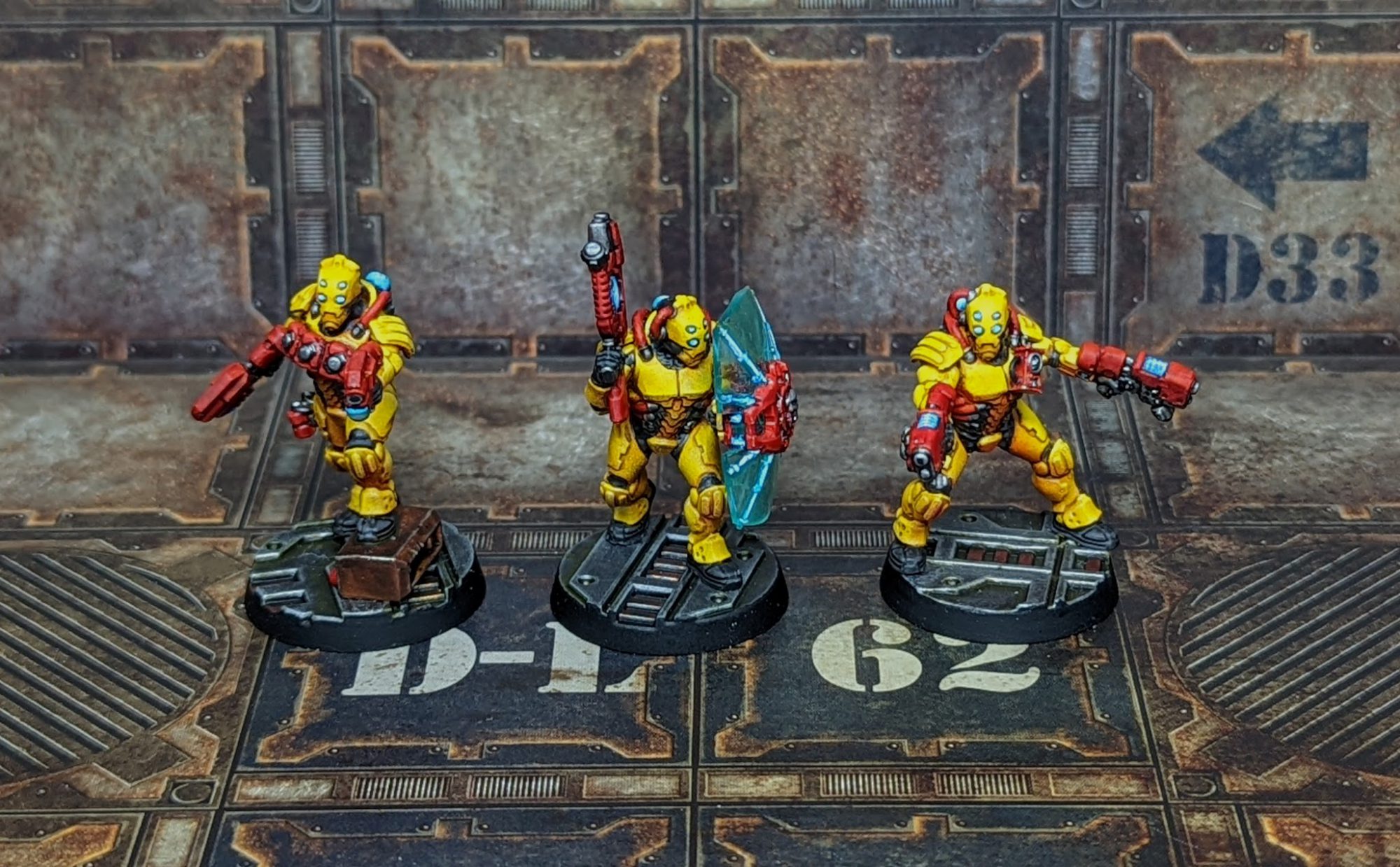Van Saar Teks. Credit: Kevin GensonIn terms of composition I tend to go fairly simple, with Subteks and Neoteks equipped with lasguns and a variety of special weapons for the specialist and leaders. I'm a big fan of the grav gun, and even the meltagun is suitably terrifying in close quarters. I could easily have just slapped a bunch of plasma guns in the gang but I don't think that's particularly fun. In both Lost Zone campaigns I played Crabro ended up with a heavy bolter and he quickly became the personification of death. Archeoteks aren't allowed energy shields (WHY?) so he tends to lug around a ceramite shield if I find one.