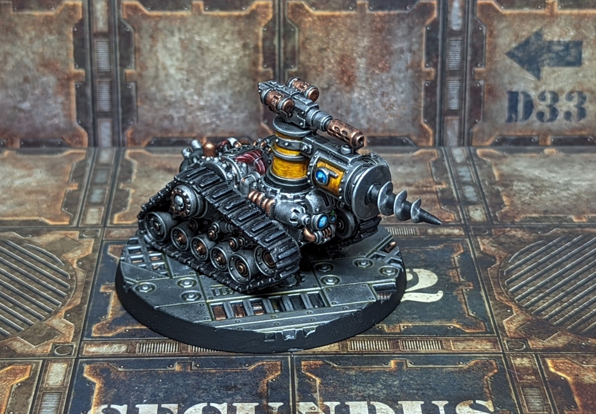Archaeo-Hunters Driller Robot. Credit: Kevin GensonOne of the best things about Necromunda is how many opportunities you have to do random things. A good example is the driller bot I built for the Archaeo-Hunters mission. It has no use outside of that one game (and possibly a Rogue Ambot...), but it was fun to paint and I think it looks cool.