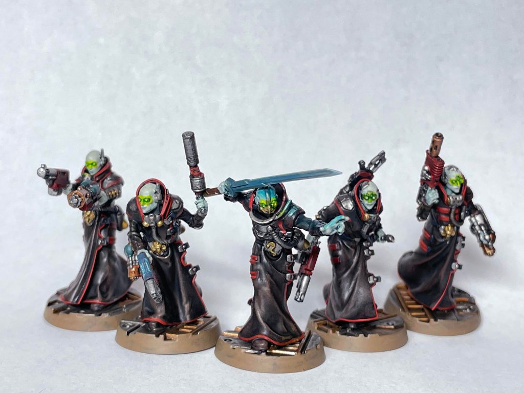 Credit: SwiftbladeI do have a little bit of OSL here too, with the mechanical eyes on the Delaque models and the Nacht Ghul Ninja Blade. Again, the power of contrast and technical paints shines through here. The Ninja Blade is just some Aethromatic Blue glazes, and the green glow is Tesseract Glow technical paint, which is my secret best trick for any sort of easy green OSL.