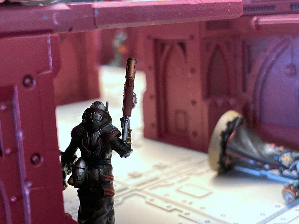 Snake Eater Phantom, Rain Revolver, on the prowl. Credit: SwiftbladeOne of Delaques best strengths is its champions - who can become very dangerous right out the gate - and the Snake Eaters were no different. My leader had a plasma pistol and web gauntlet. He mostly made sure that my juves could group activate and keep cool. My bruisers were my champions and nacht ghul. Both of these guys could infiltrate, and each was equipped with some very dangerous stuff. The Champion had a meltagun and web gauntlet, which was eye-wateringly expensive at gang creation but meant that with infiltrate and after a levelup the excellent faceless skill, he had little trouble sneaking around and dispatching anything that got in his way. The Nacht Ghul’s ninja blade was a great way to decisively put down any rogue threats as well, and he was stupid fast to boot. I did later give him Wyrd powers from the delaque list as well as picking up a Psy-Gheist for the power Spatial Psychosis, which let me pin enemies as a simple action. Now, as it turns out the Psy-Gheist is terrible at actually casting powers with willpower 8, but as long as he could focus he usually did okay.