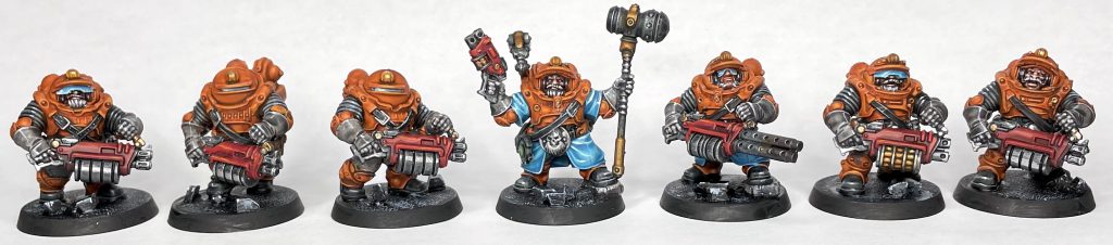 The Squat Brute is the Ironhead Squat Vartijan Exo-driller, which comes in at the very affordable price of 250 credits. They’re about as hard to kill as an Ambot, and come with a Firestorm (1) heavy flamer that can be upgraded to a Rapid Fire (3) heavy bolter for 50 credits. They also come with a fist weapon and a seismic crusher, which is a template weapon that has the Concussion and Seismic traits. With a BS of 3+ it’s not a bad idea to upgrade to the heavy bolter for some range.