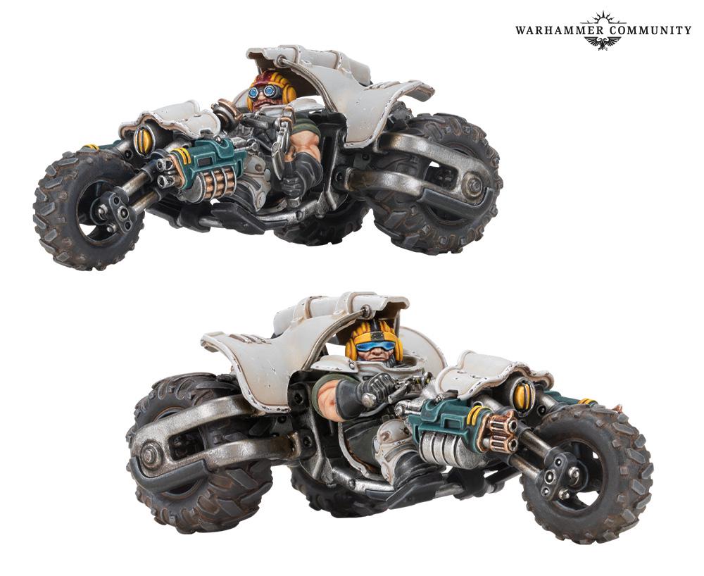 Ironhead Squat gangs have access to two vehicles, and they’re both absurdly undercosted for what they can do.- The Svenotar Scout Trike costs 105 credits for a 8” move, 5/4/4 Toughness profile, and 3 HP with a 5+ Save. 10 credits over the Ridgerunner gets you an extra movement and 5+ Handling. It also has the option to bring a Techmite Oculi along for 40 credits, which is pretty impressive given how useful the Oculi can be. Weapons wise it can field a twin-linked Ironhead autogun, twin-linked Ironhead boltgun, or a twin-linked meltagun.