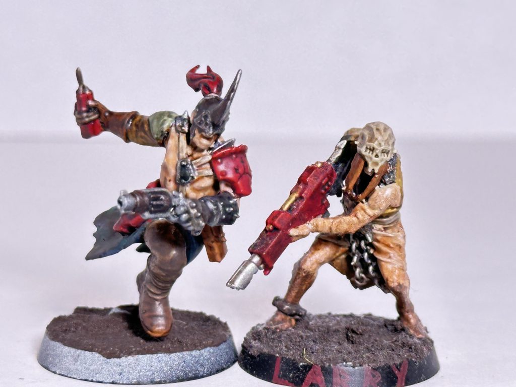 Also of note, to strengthen the thought that you should take Cultists with Lasguns. I always take one Cultist I have lovingly named Lasgun Larry. Larry is a simple man and knows what’s good in life. He is content to be a simple bruiser and shoot enemies with his Lasgun, no schemes to rise the ranks and become top boss, no underhanded tactics to make himself seem bigger than he is. Lasgun Larry has been named Hero of the Wastes because he is simple and effective. He almost always hits his mark and almost always hurts them, too. Maybe it’s the dumb luck of the dice, but Lasgun Larry has never failed me, and will always be there in my gang list as a basic ganger, least among equals. Also, look in the images of the gang lists below and find Larry hanging around, spot all 3 and win a cookie!