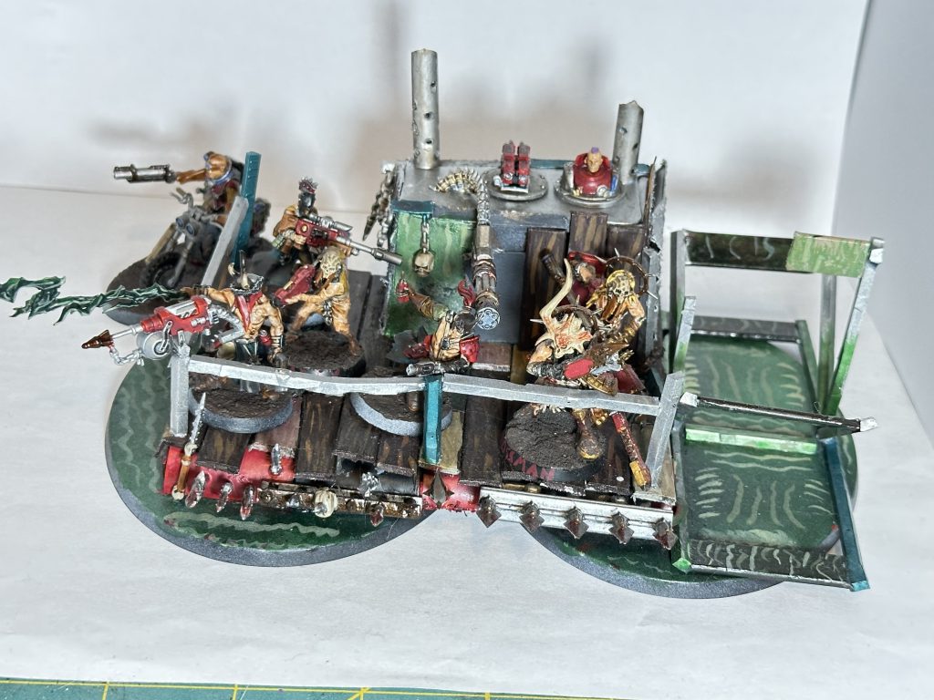 Sludge Barge (Scum Racer Crew): Heavy Stubber (Crew Operated), Harpoon Launcher (Passenger Operated, Front/Right Facing), Easy Turnover, Gas-Promethium Engine, Ram, Transport Bed, Weapons Stash (505)