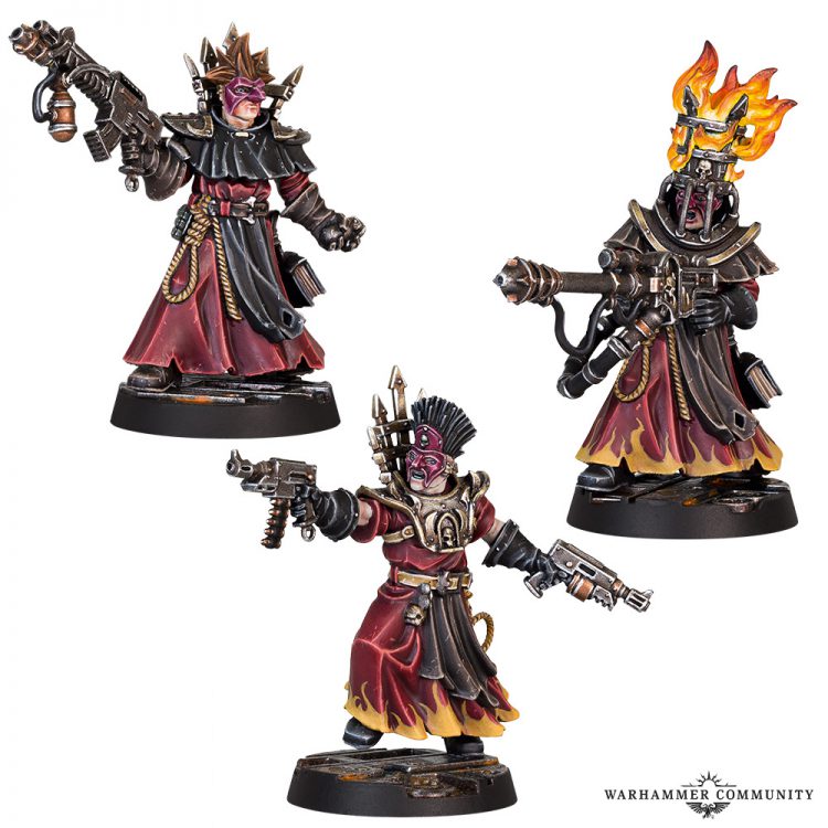 Generally, the “House of ___” books give us a new Champ, new Juve, and a new pet (sorry, Goliaths!). In House of Faith, Cawdor are getting an entire secondary roster: a new Leader, a new Champion, a new Ganger, and a new Juve! We’re talking about new models, new special rules, and new equipment lists, too. This is a lot to digest, but thankfully, we’re here to help break it down.The first thing to note is that a Cawdor gang needs to deal with alignment. The Cawdor player can choose between regular Cawdor fighters, who the rest of the hive would see as dangerous fanatics, and Redemptionists, who the rest of House Cawdor see as dangerous fanatics. Due to their habit of burning everyone and everything in sight, Redemptionists are Outlaws, and are generally unwelcome in most of the Underhive.
