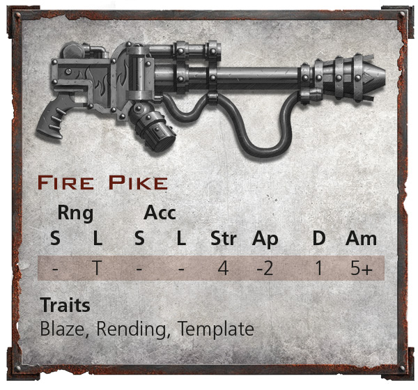 - Fire Pikes are what happens when a Redemptionist sees a flamer and thinks, “Not enough gun.” They’re pricey, but they’ll put down some of the toughest fighters around, no problem.