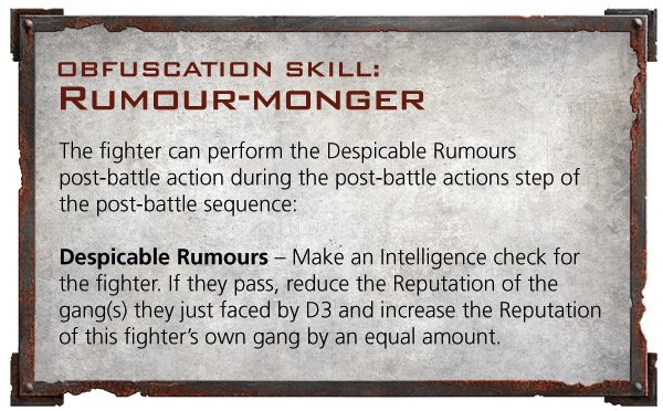 Credit: Games WorkshopI don’t care if I never pass a single check for this during the entire campaign, Rumor-Monger is my ride or die. I don’t tend to actually win a lot of games with my Delaque, but the very notion that I could lie about winning loud enough that the other gangs believe me is enough.