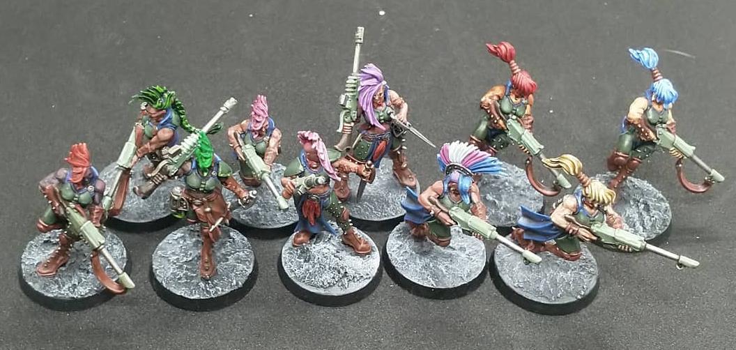 - Long-Range Goddesses: Access to the cheapest Lasguns in the game and a decent Ballistic Skill to land shots with them means that Eschers are reliably capable of keeping enemy gangs pinned from half a battlefield away. Even while split up around the battlefield, they’ll often have enough weapons within 24” to at the very least guarantee that any nasty melee fighters who poke their heads out will be ducking for cover.