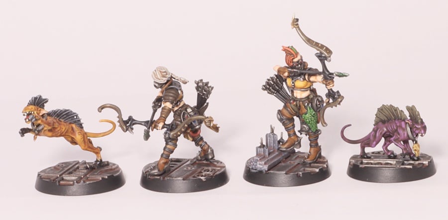 Phelynx (Exotic Beast): A Wyld Runner’s personal retinue, up to three of these bizarre lizard-cat hybrids can be fielded alongside the Prospect as a single crew slot altogether. Even though they’re packing a respectable 6” Movement, the Phelynx lacks the Phyrr Cat’s extended leash range, so it’ll need to be activated after its owner moves to avoid risking a Nerve test and becoming broken. It shines in a defensive screening role, bogging down the midfield and standing between potential enemy chargers and squishier ranged Escher fighters. Their two attacks aren’t particularly threatening, with Strength 3 on a 4+, but the possibility of Toxin applied on a 6+ hit roll will still give enemy champions a bit of pause. Also remember that the Phelynx’s attacks are all Reckless, so when attacking with a pair of them be sure to angle their vision arcs to prevent friendly fire!