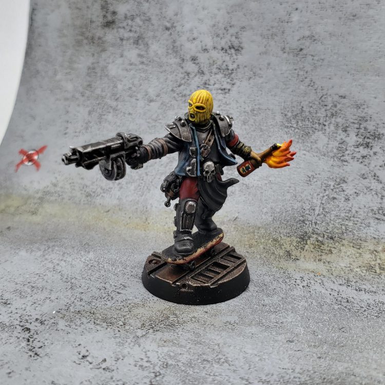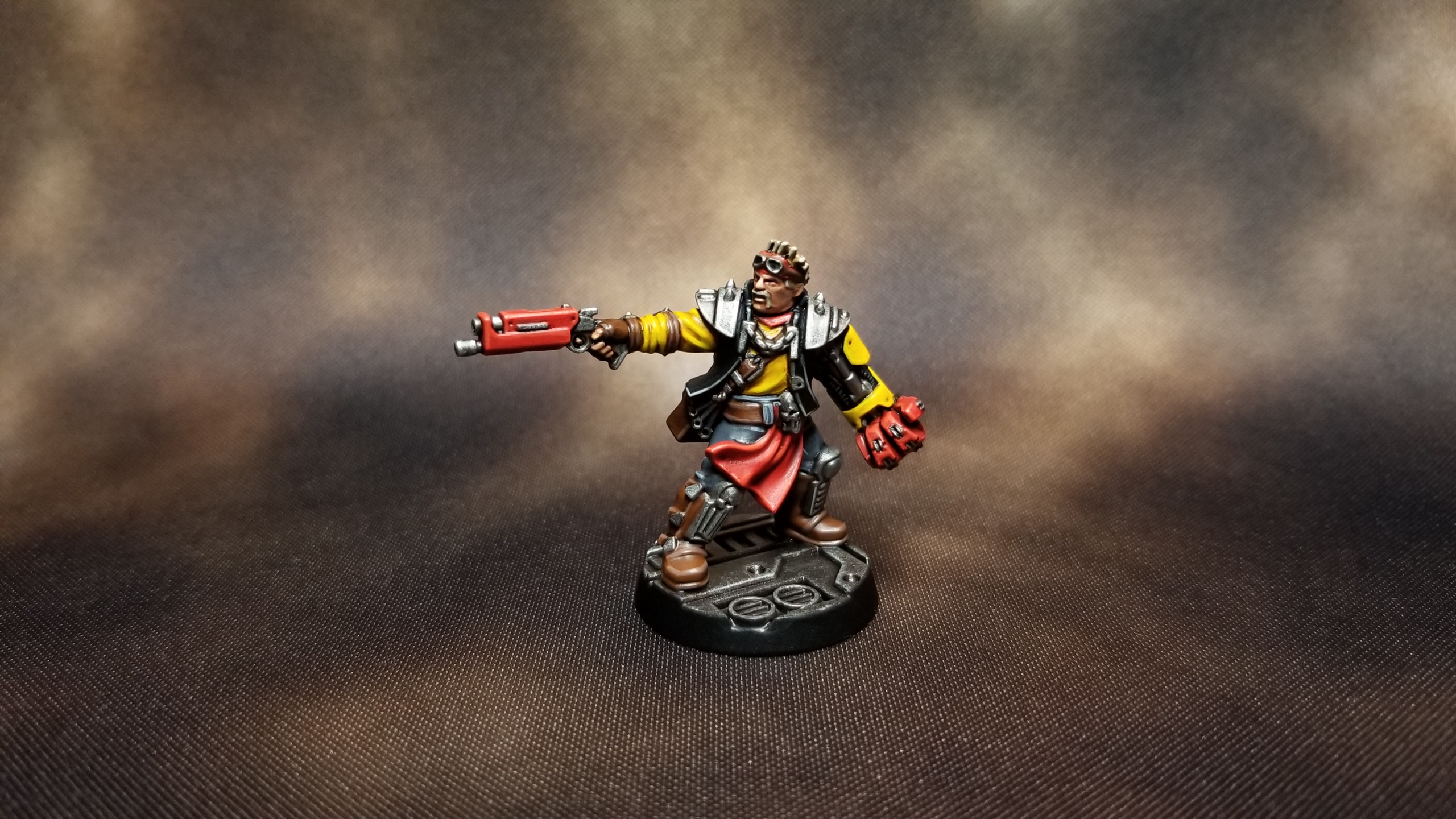 An interesting risk/reward choice if you are going Wrecker-heavy for your gang. A 1 here could be devastating, but the prospect of cross-board charges is pretty tasty. If he ends up on the table, he’s toting a hand flamer and the Munitioneer skill for extra fun! We think the real value here is having a Grease Monkey on hand to turbo-charge and Ambot. Unfortunately, this hanger-on seems pretty extraneous. The use case is just a little too thin.