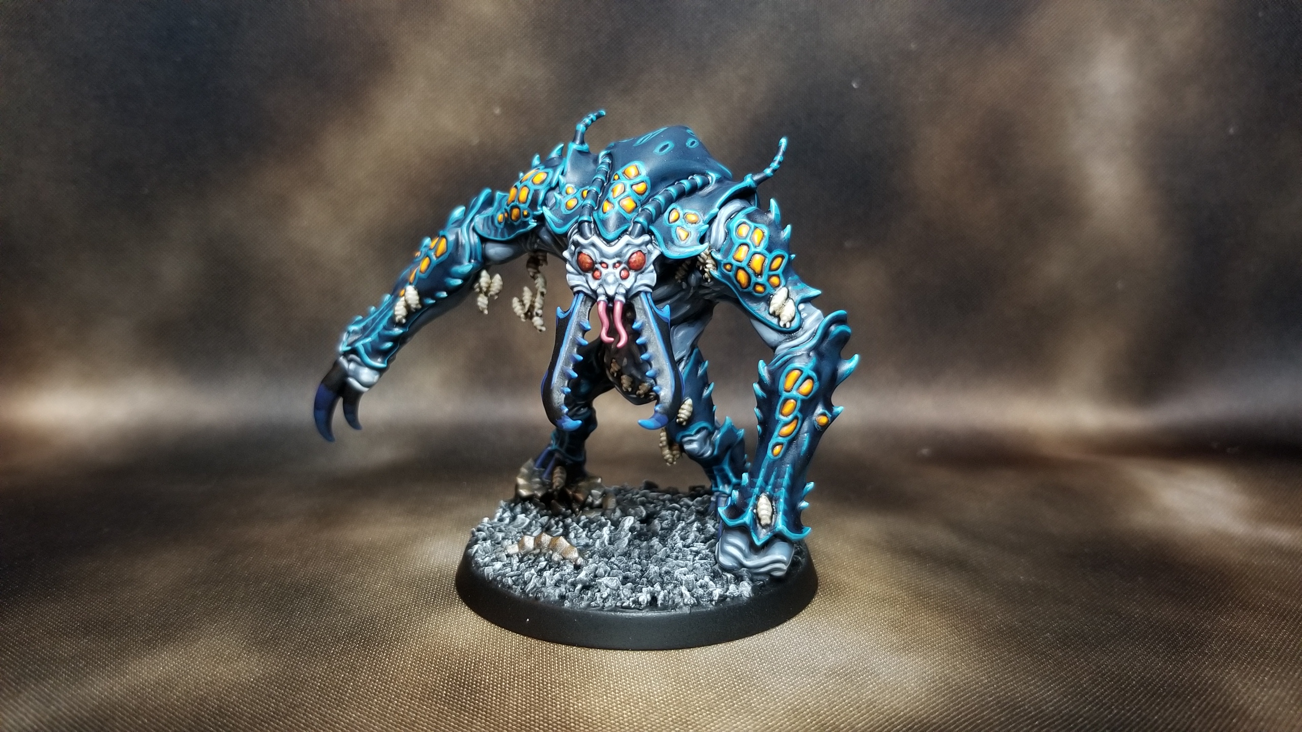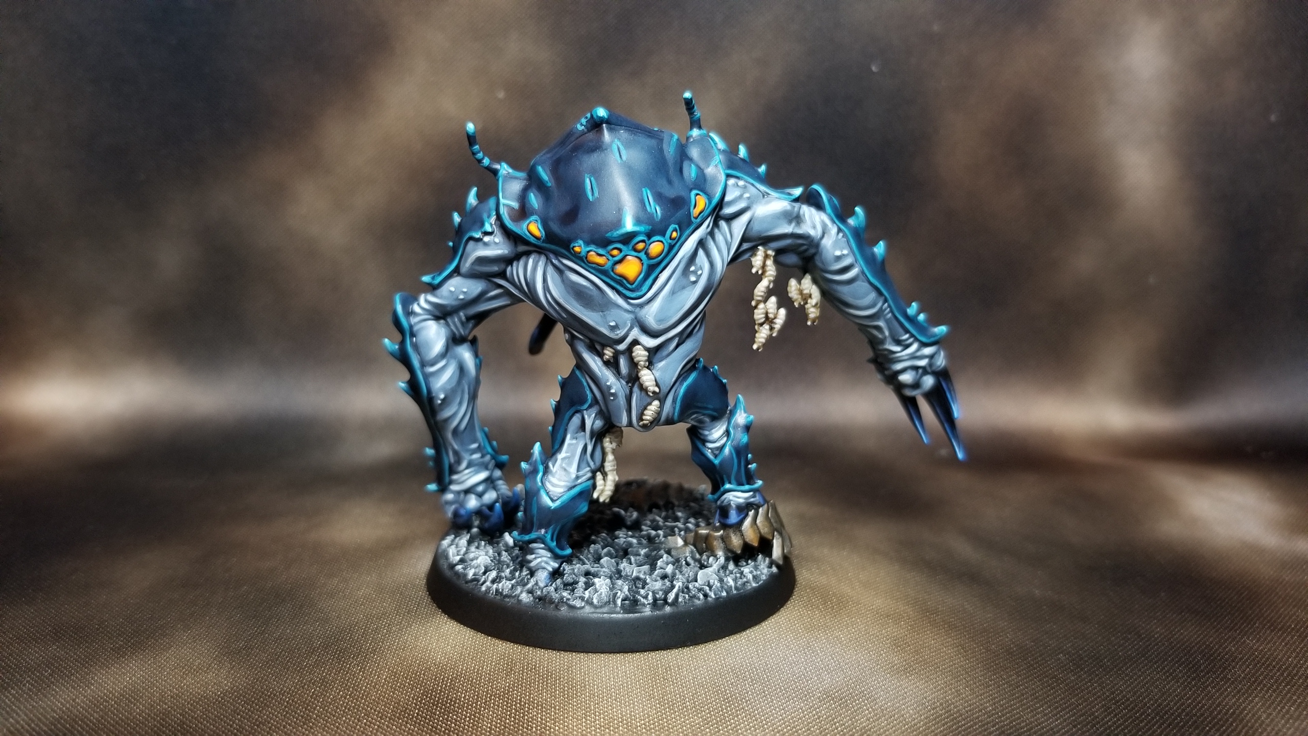 I painted my large insect son blue because I like painting blue and I rarely get to do it. I'm very happy with how it came out, and I've used the recipe again on a Blood Bowl Troll I've painted recently. Blue, y'all. It's cool!