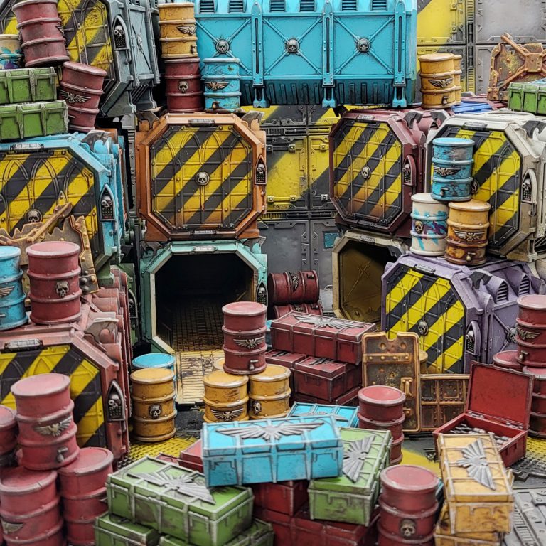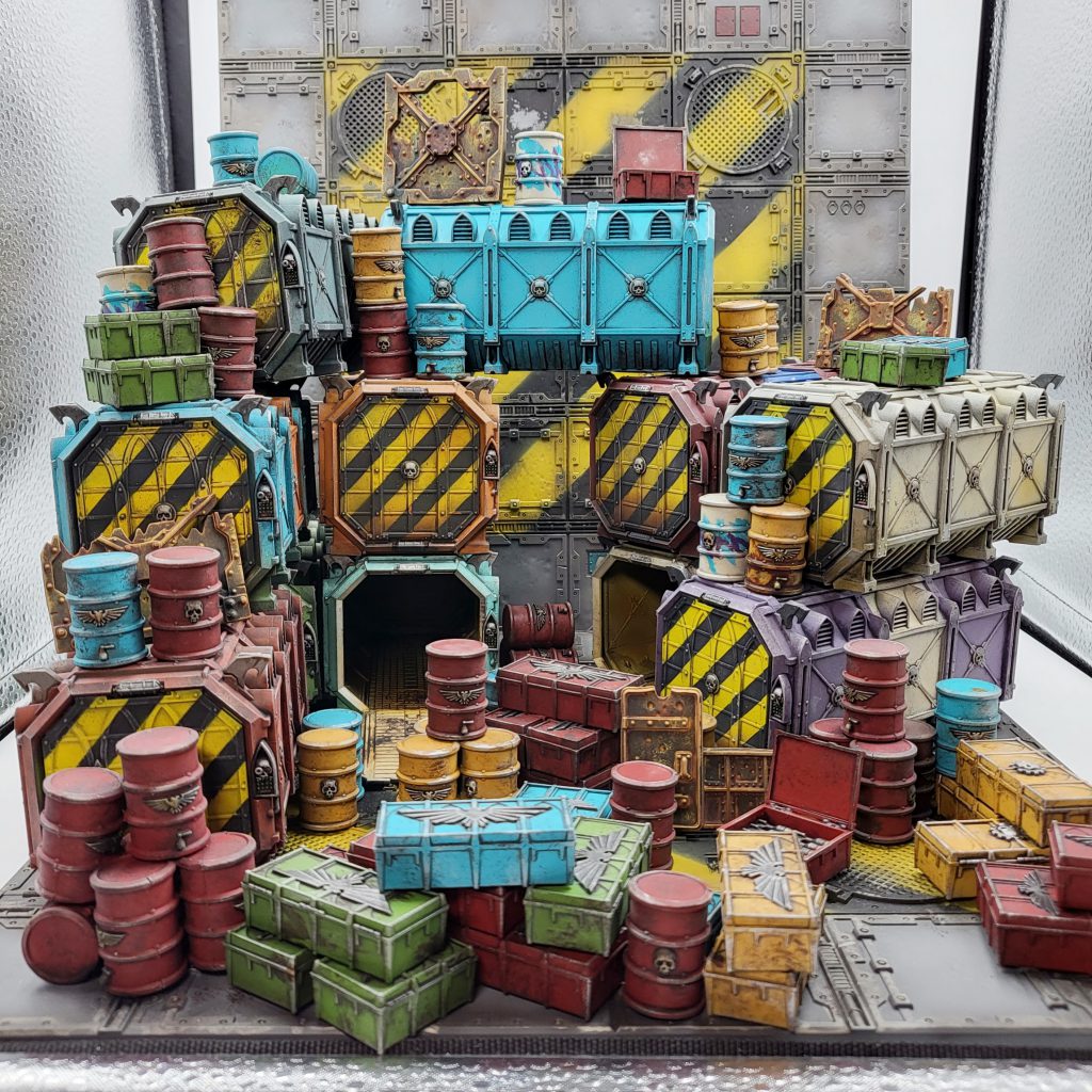 This project involved a ludicrous amount of parts: 13 Munitorum containers, 48 barrels, and 69 (nice) crates. Even taking on an entire Munitions Hub box + is doable if you have a plan and execute on it! If you have a big old pile of scatter - pick some base colors and get cracking! You might even get to the deepest recesses of your pile of shame!