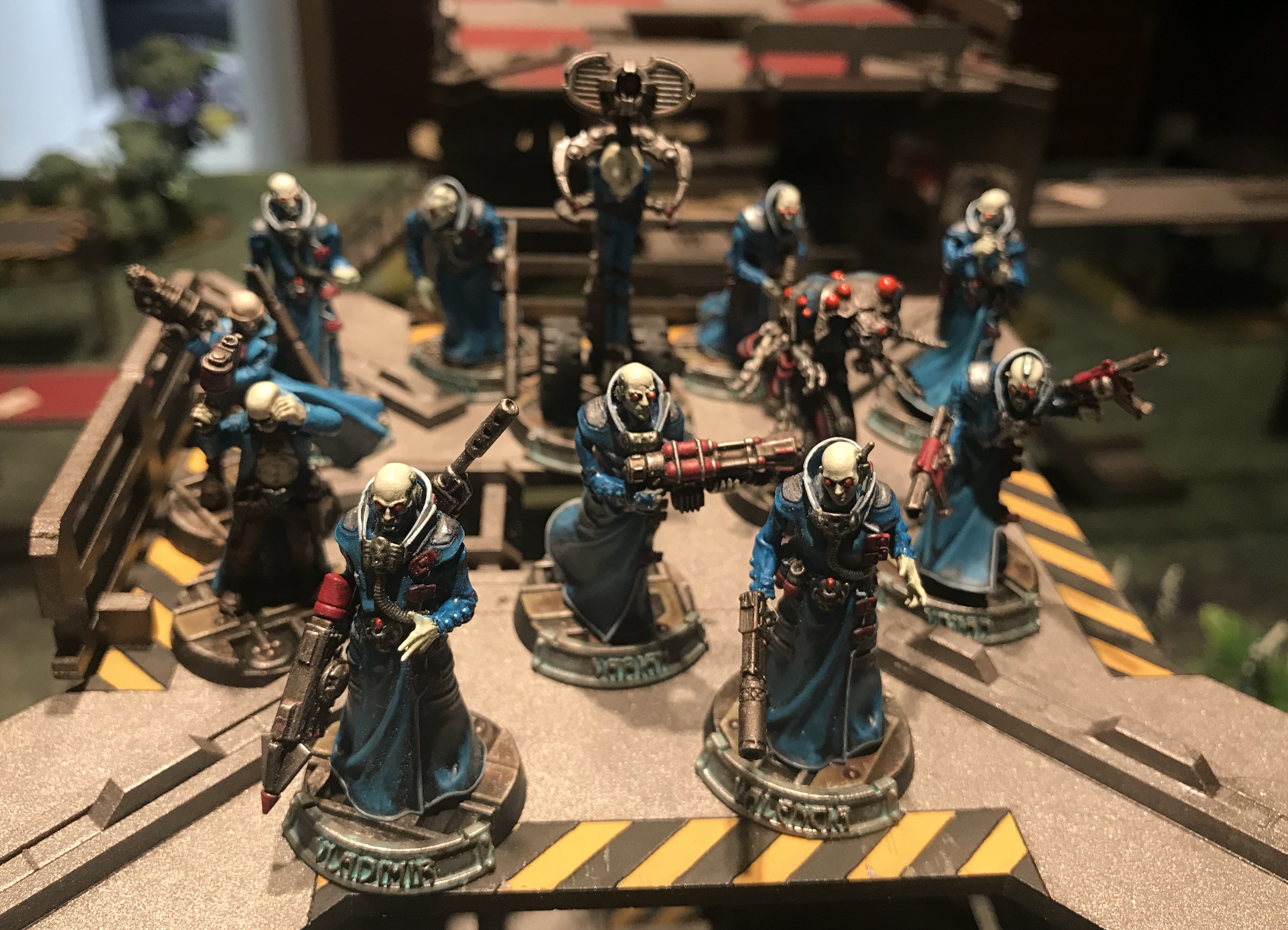 A sinister Chaos Cult. Photo by The Chirurgeon.If you’ve got a bevy of 40k Chaos Cultists lying around (or a Blackstone fortress set!) then you’ve got a Chaos Cult in the making! This gang can do a lot of fun things including psychic powers, gaining the favor of the dark gods, and summoning a Chaos Spawn for the low, low price of one of your cultists! They’re one of the most flavorful gangs possible, and that’s really saying something.