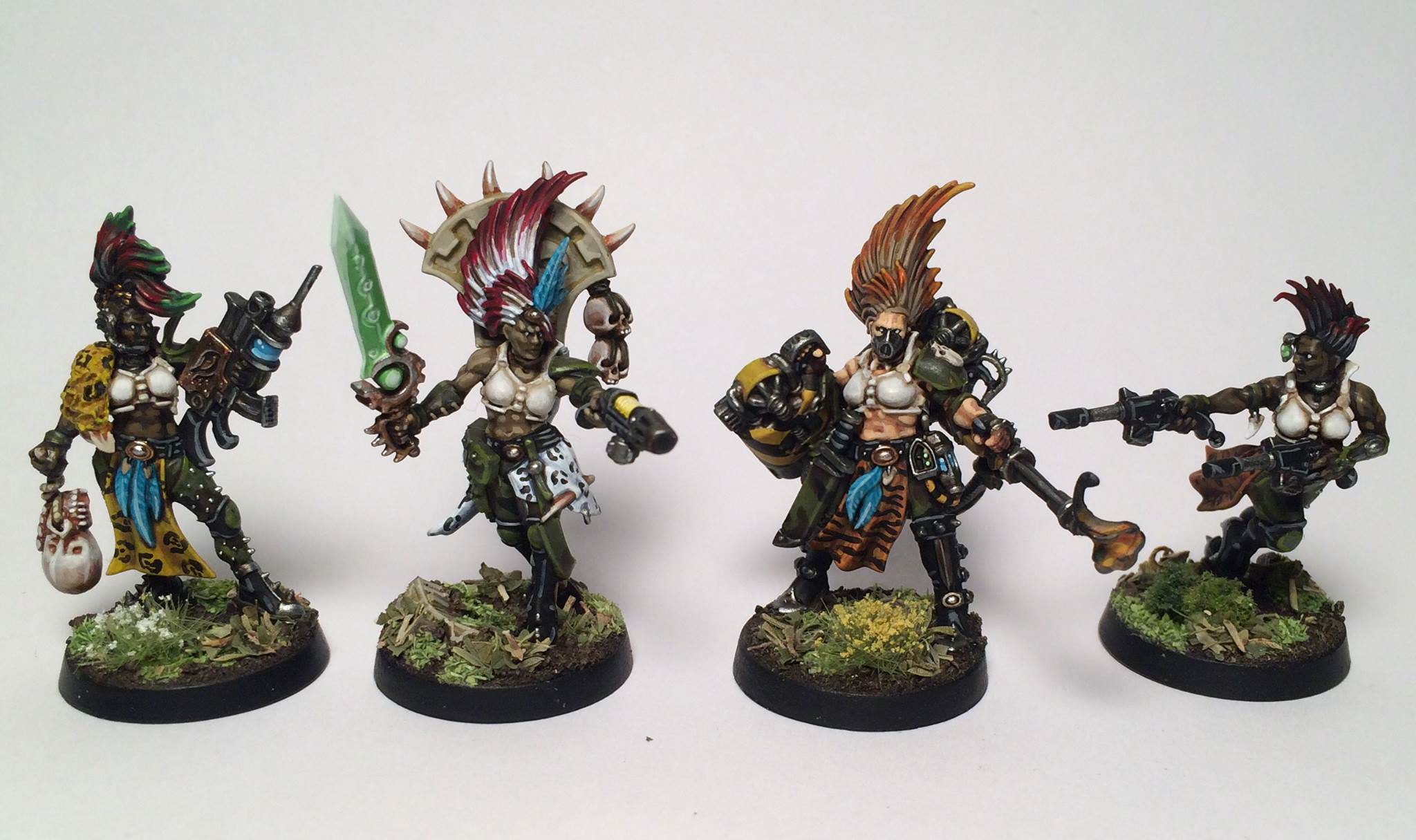 Strengths: Plentiful long-ranged firepower and high speed. Poisoned weapons to deal with multi-wound models who get too close for comfort. With cheaper gangers and lots of effective basic weapons, expect Escher gangs to have numerical superiority, too.