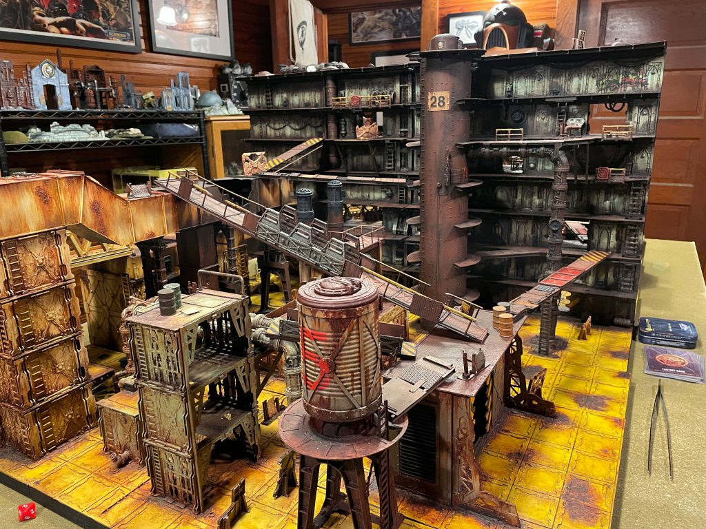 Dan: What an incredible weekend! It had been a long while since I got to play any in-person Necromunda. Since March of 2020, to be specific, and this event was absolutely perfect. Necromunda is 100% a game best enjoyed in person. There were several instances of all of us cheering as some poor dumbass fell off a gantry to their premature demise, which is alway fun. Dylan’s incredible Necromunda terrain is so much dang fun to play on, and I’m a little worried that I’m not going to enjoy playing Necromunda anywhere else!