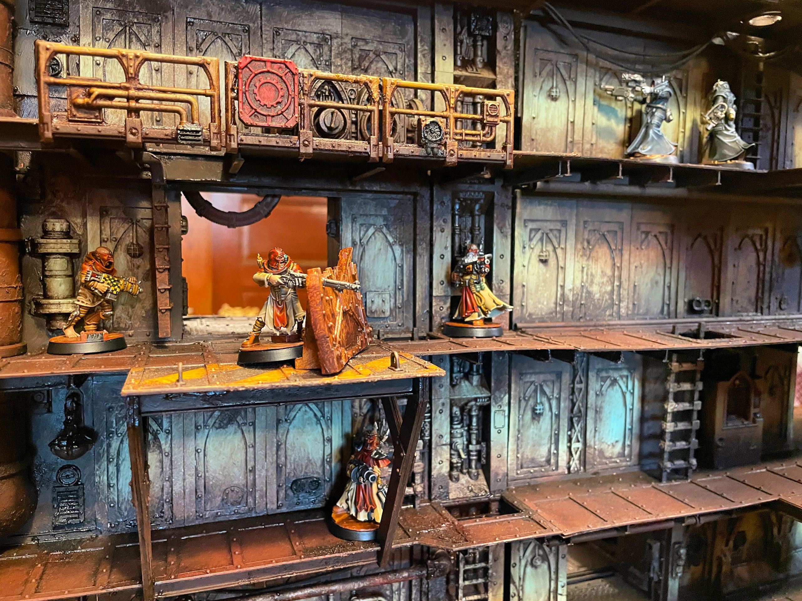 Dan: The Orlock mirror match was hilarious. The Archies and the Manwolfs were clearly upset that another Orlock gang had shown up to throw down, and they expressed their rage by sprinting directly at one another and unleashing as many bullets as humanly possible! Highlights include my hand flamer wrecker blasting across the board (and several vertical levels!) to flame some manwolfs, only to immediately eat shredder ammo. Fowler’s wrecker, Gutter, failing to use his jump pack for two turns in a row, and the aforementioned similarly-armed leader faceoff, which I only won because I happened to be the one who charged! Fowler: Playing some matches on such a magnificent table really got me thinking that verticality HAS to be part of a 3d necro board. My franken-table usually has a few floors, but I suspect I will be trying to go much higher with builds in the future. Aside from the good company and the quality beers, my third favorite part about the weekend was the constant stream of strength 9 falling hits.Final Thoughts