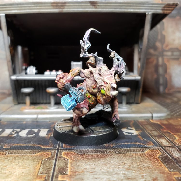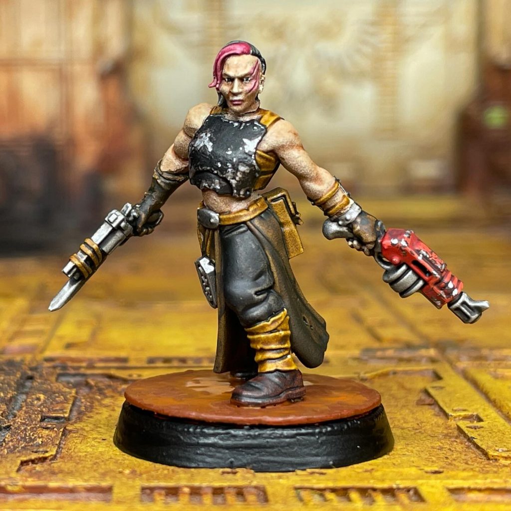 Is a Necromunda model! This gang gives you the freedom to model your boss however you want, and to make the rest of your gang fit the vibes accordingly. Since you are allowed to choose ANY statblock in Necromunda (the game) to be your leader, you can get up to some wild shenanigans! And, they can be equipped with anything from the Trading Post/Black Market that’s Rarity/Illegality 9 or less! How about a Goliath Stimmer with Boning Swords to pack a punch in melee? Or a charismatic Venator Ogryn Boss Gunslinger with dual wielded Rad-Round Autopistols? An Ambot, a Purestrain Genestealer, a Guild of Water Siphoning Delegation, a Cold Trader Shore Party. All are valid and acceptable options! Just make sure to clear it with the arbitrator before you make your Psychically Awakened Ambot Gunslinger!Edit: Boning Swords aren't available in the Trading Post. There's a great PDF that outlines what is commonly available there. I was using a Gang Creator Tool and it mislabeled most Corpse Grinder equipment as being Common in the TP.