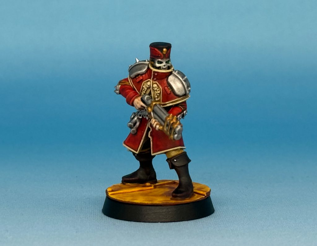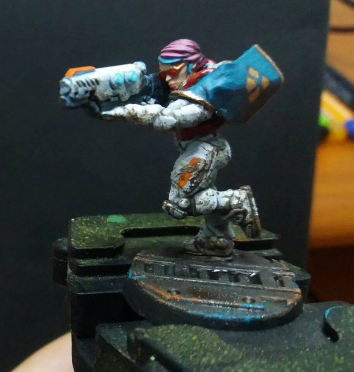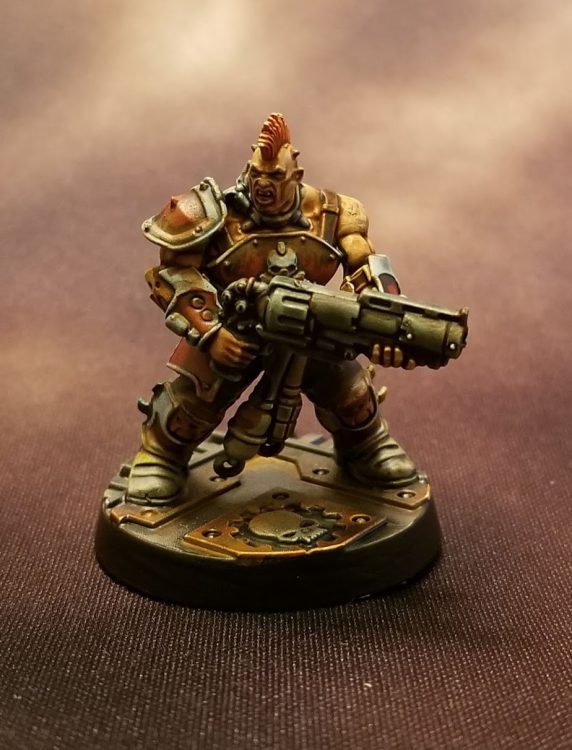 Palatine Justicar Bailiff with Shotgun. Credit: 40khamslam.Special weapons are nice because you get a lot of versatility and options for what to take at the start of a campaign. If you’re going to get up close and personal with it, take a Webber or a Flamer, and the Run and Gun skill will let you jump the enemy when they least expect it! If you want to stay safe at range, a Longlas, Long Rifle, or Needle Rifle will do the trick. I do, however, think it best to keep your Leader near the front lines, as they can gain the maximum benefit from their good BS, and can bring a Plasma Gun to bear on the enemy! After a few games give the guy a Meltagun and see just how funny it gets!