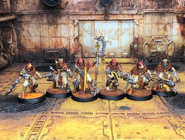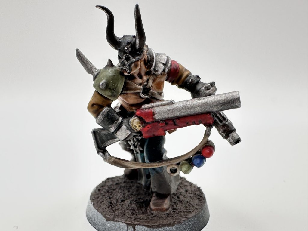 For standard profiles, really any gang Leader from the House lists, or really any that aren’t Corpse Grinders or Slave-Ogryn, would fit the bill. Most Leaders have a 3+ WS/BS and standard Movement, it really just comes down to your choice for what you want to model, as well as considering their Movement and Initiative. The Van Saar Prime, for example, is slow but has a 2+ BS, and would be an excellent choice for a heavy gunner Leader. Escher Queens and Delaque Masters of Shadow are good considerations as well, due to their quick movement and ability to run and gun. I also want to mention the Genestealer Cult Alpha as well, because he’s got basically the same benefits as the other gang Leaders, but has an Extra Arm for even more shooting! A great time to use the Kellermorph for conversion!