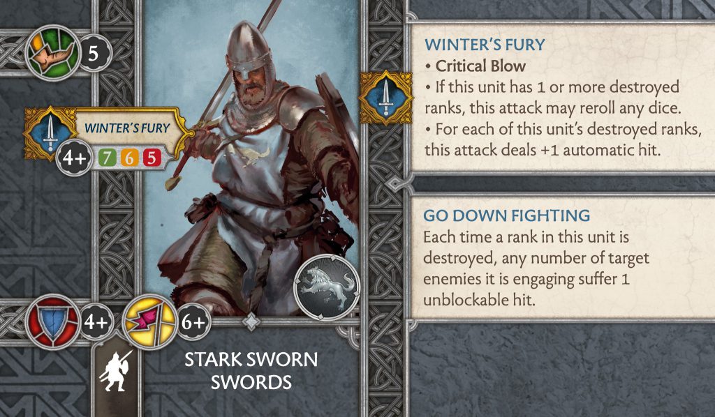 Stark Sworn Swords - Mid and Last Rank Dice Increase, Go Down Fighting and Winter’s Fury Rework
