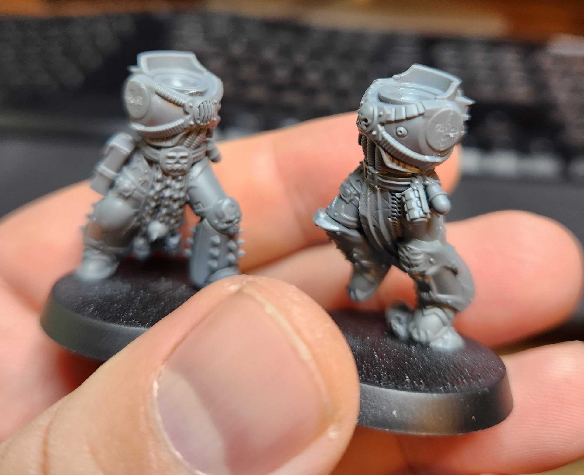These guys come with several interchangeable head options and hands so you can easily build 3-4 boxes and not have any duplicate models. This is also an excellent place to sub in Necromunda Corpse Grinders, who fit the mood and aesthetic pretty much perfectly.