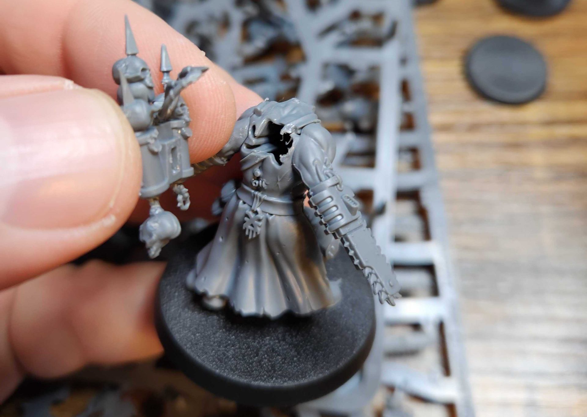 Invocatus is a pretty straightforward build, though note that if you want to paint the model with him as a separate piece, you'll need to leave off one of his legs; his and the Juggalords' legs "hook in" to the sides of the Juggernaut, meaning that once they're glued on you won't be able to push the model down onto the saddle without breaking one of the legs off.