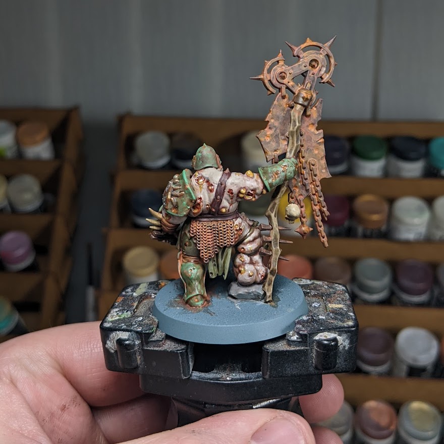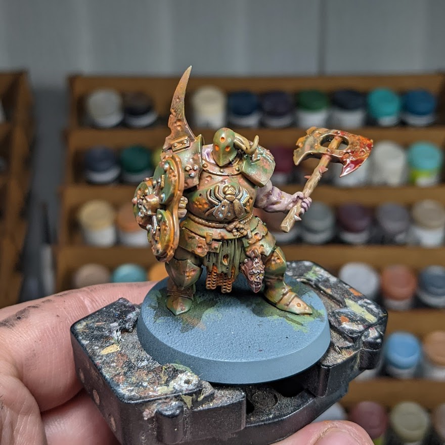 But then I remembered I had ten of the suckers to paint and my heart sunk a bit. I hadn’t felt like this about the other armies, but now the idea of getting a group of models done felt overwhelming. Maybe I’d made the scheme too complex? I tried to assess my method and I’d experiment with some different approaches as I painted up the other 9, but it never really clicked for me. I ended up with a decent looking unit that I felt deeply uninspired by. I couldn’t explain it - I love nurgle and these models, I just wasn’t happy with how I was painting them.