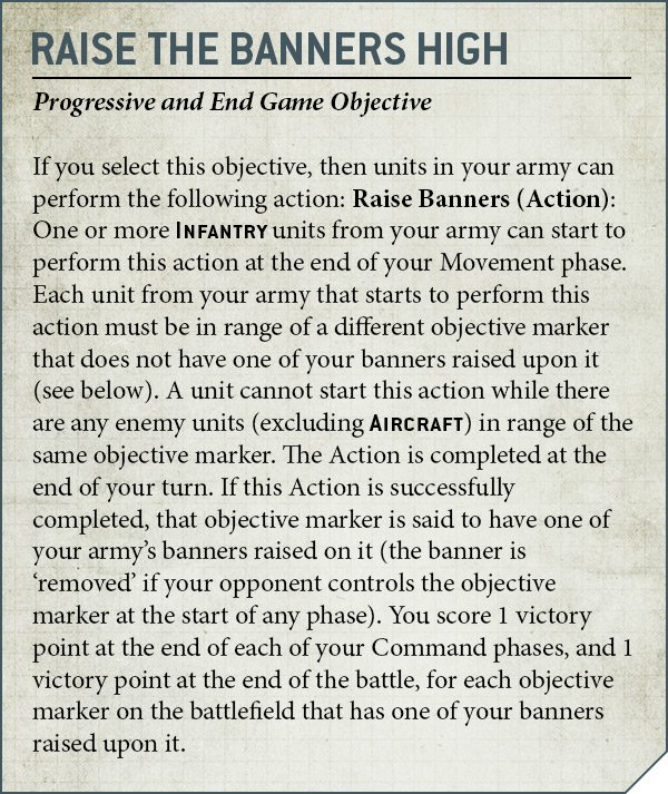 Credit: Warhammer CommunityNotably, being buzzed by jets doesn't impact your ability to do this Activity, it just makes you look cooler while doing it. It also functions as both a progressive and endgame objective, and adds a real "capture ground" feel that traditional objective-grabbing never really had. The ability to give up one turn of shooting to just put an objective on auto-pilot and passively generate VPs is great, but not half as great as the potential for incredibly cool objective markers with little flags on them.