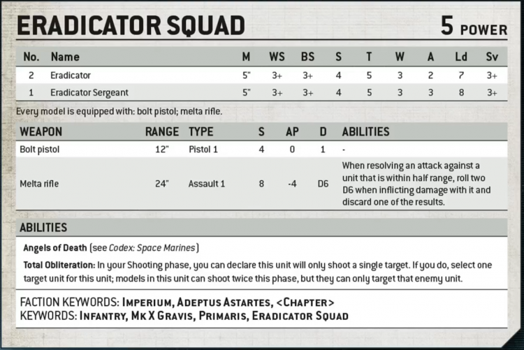 Whew. As if all of that weren't enough, we also got the utterly terrifying datasheet for Primaris Eradicators, the melta-toting Gravis models from Indomitus: