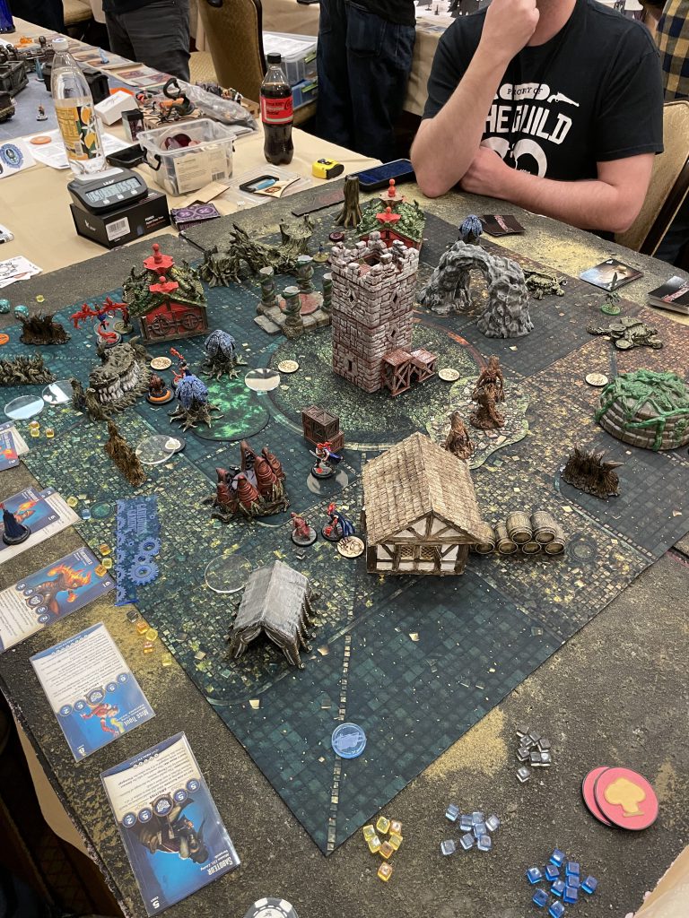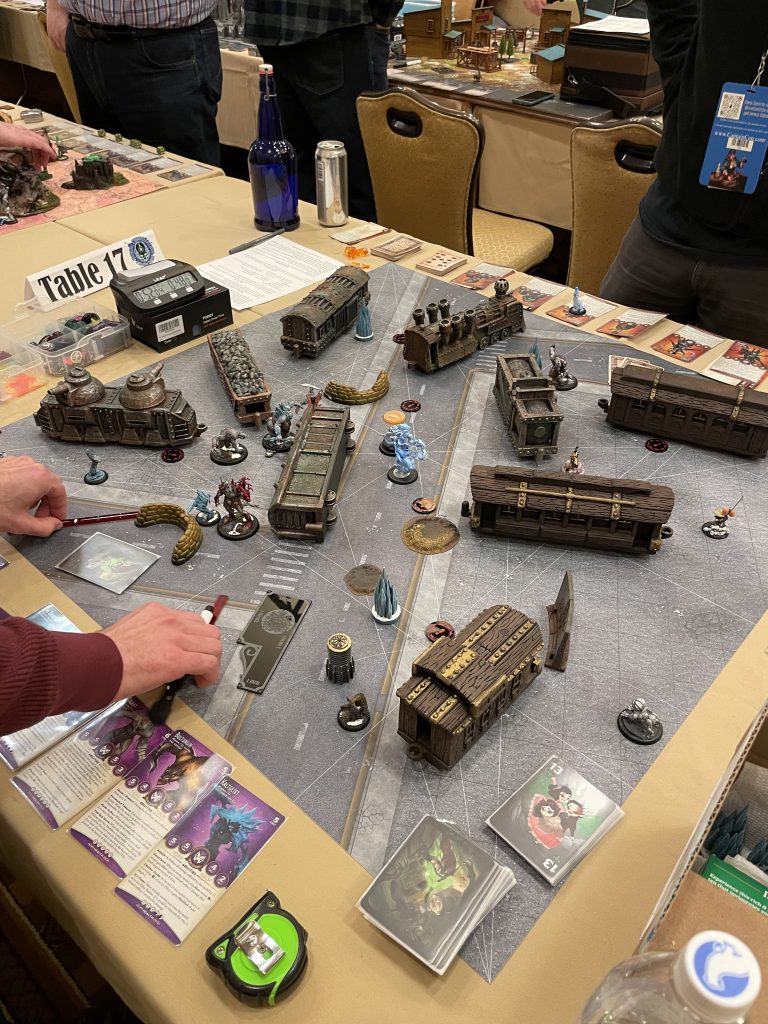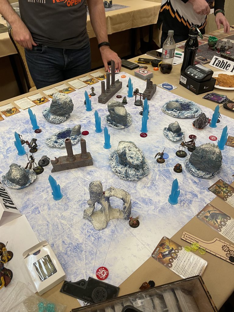 I was riding high off of a strong start, but I knew Round 2 would be difficult. An 8-1 game is a wonderful thing, but my tiebreakers were extremely strong, and that meant that my Round 2 matchup would be a tough one as well.I drew into Owen, a Capital City Crew player who I'd seen around socially but never matched into before. He was on Outcasts, which is not my favorite faction to play into, but Owen is a very chill guy and so I knew the game wouldn't be that bad.