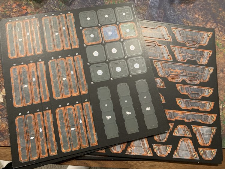 TinkerTurf terrain comes printed on square chip board sheets that have been die cut. Again, if you own any board games you've seen this before. They punch out cleanly and are numbered to make assembly easier. Many pieces are also glued together and the art is designed to make it clear where you want to put the glue.