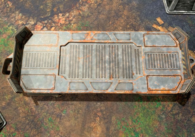 Example set-up with multiple sets. Credit: Tinker House GamesAs far as cons, there isn't much modularity in any of the pieces you assemble. With the exception of the Containers which offer open and closed options, everything goes together in just one way and cardboard isn't as easy to kitbash as plastic. Also, depending on your storage availability you may have to break down elements like the crane and track which will add to the set-up time when you're building a table. These are more quibbles than complaints, however. I wanted easy and I got easy. The only other complaint I have was the lack of good LOS blockers but obviously the new campaign takes care of that.