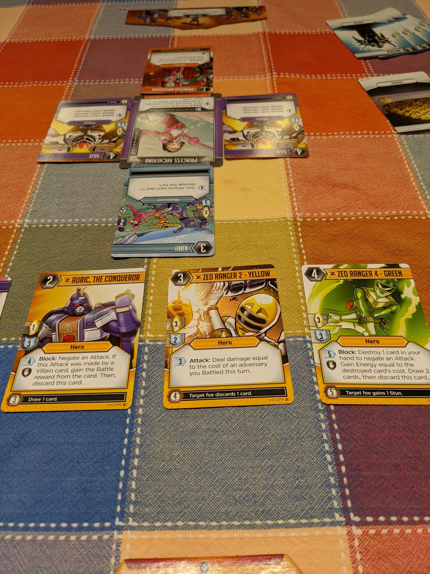 Credit: Grace ParadisThe center row also has Hero and Villain cards. Naturally, only the Power Rangers can buy Hero cards and Villains can buy Villain cards. However, the kicker with these two card types is that they will cause damage at the end of a turn if left in the center row. So, instead of using shards to buy cards, you can use them instead to battle a Hero/Villain and gain a reward. This creates an interesting tug-of-war in deciding how to use your shards each turn, debating between improving your deck or reducing outright damage. While bringing the other team’s health down to zero is the main goal of the game, this center row damage control becomes an additional consideration. It also means each team is motivated and keep the options in the center row churning.