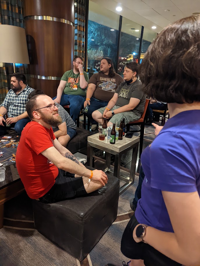 Afterwards, I went back home to take care of some stuff there, then went back to the convention to have drinks with my Goons. We commiserated about the various issues and difficulties with the narrative event. I went to bed around 12:30.
