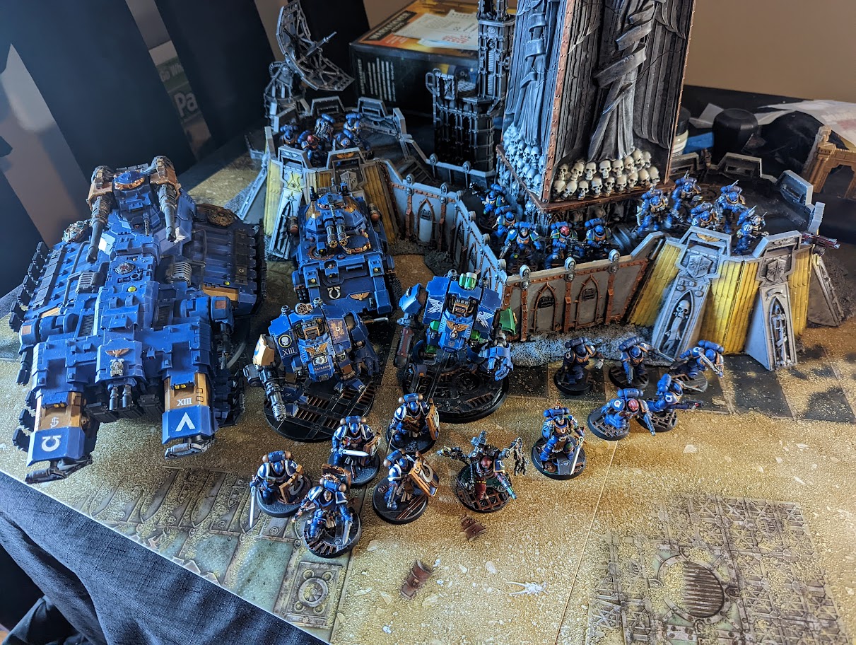 Credit: Kevin StillmanNevertheless, I got one game in with TableWar's Doug, in an Ultramarines mirror match! I am very appreciative to Doug for dealing with an exhausted Kevin, and letting me rampage around with my Astraeus in it's first-ever tabletop appearance. The mission we picked had us both place half our armies into reserve for the first three rounds. Unfortunately for me, my army was mostly an Astraeus, some Marines, two Redemptors, and a Gladiator Tank. So by the time my reserves came in, most of the rest of my army and been destroyed or was otherwise too far away from actually have an effect on the outcome of the game.